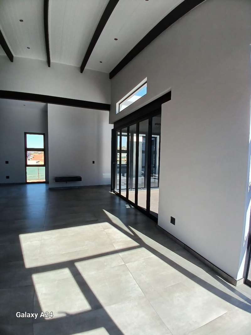 The new development within Schoongezigt Estate offers an exciting opportunity to choose from 6 types of luxurious modern houses ranging from R4 235 000 to R6 397 220. All houses are newly built, featuring 3 bedrooms and 3 bathrooms, all ensuites. The open plan design includes a modern kitchen, dining area, and lounge with high ceilings, creating a spacious and contemporary living space. The lounge area and main bedroom open up to the pool area through aluminium bi-fold doors, seamlessly blending indoor and outdoor living spaces. The houses are surrounded by a beautifully landscaped garden with a boma and braai area, offering a perfect setting for outdoor entertainment while enjoying views of the Kgaswane Mountain Reserve. Residents of this development can enjoy a serene and quiet lifestyle within the estate, providing a peaceful retreat from the hustle and bustle of city life. With modern amenities and a picturesque setting, this new development offers a luxurious and comfortable living experience for those seeking a sophisticated and tranquil environment. Transfer Duty included. Contact the agent for viewing.