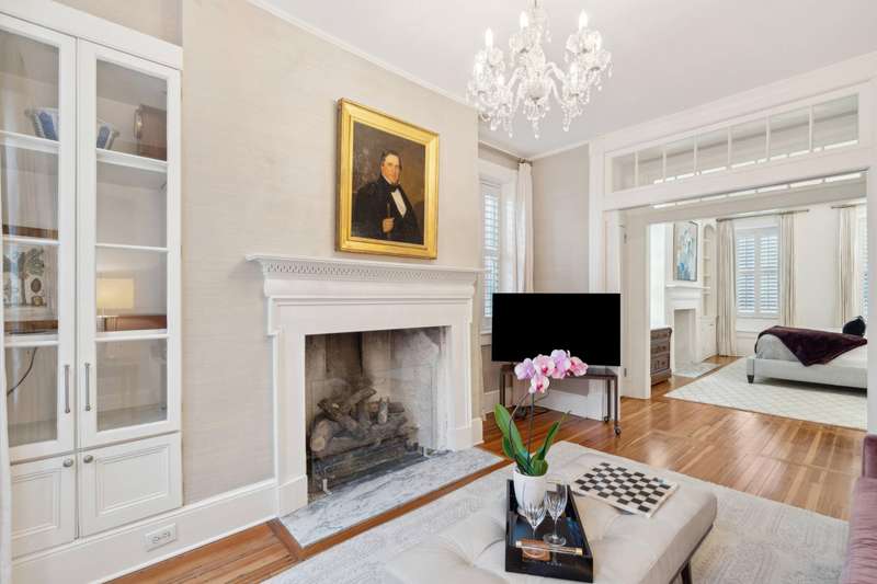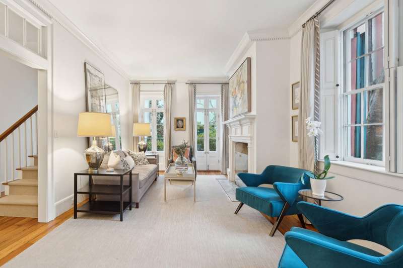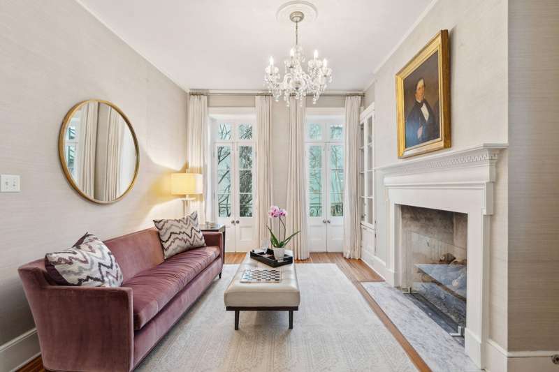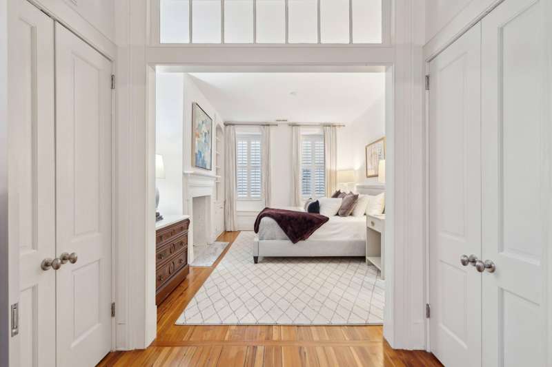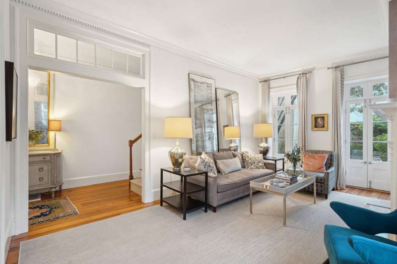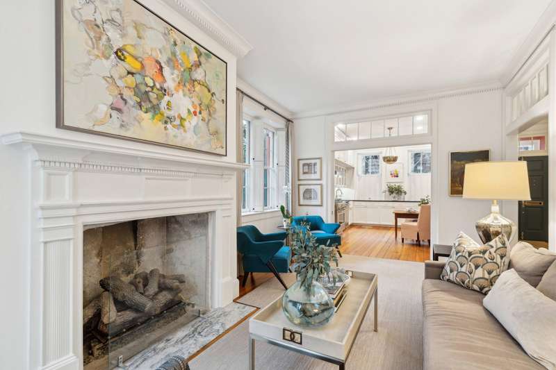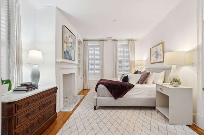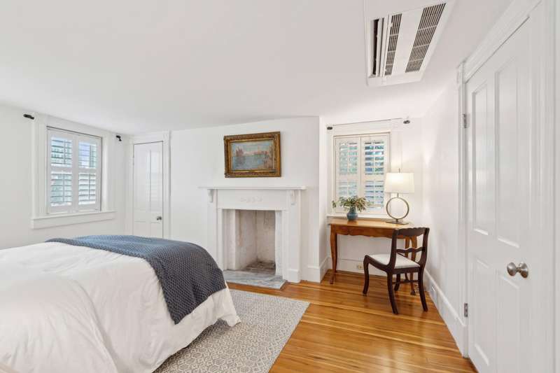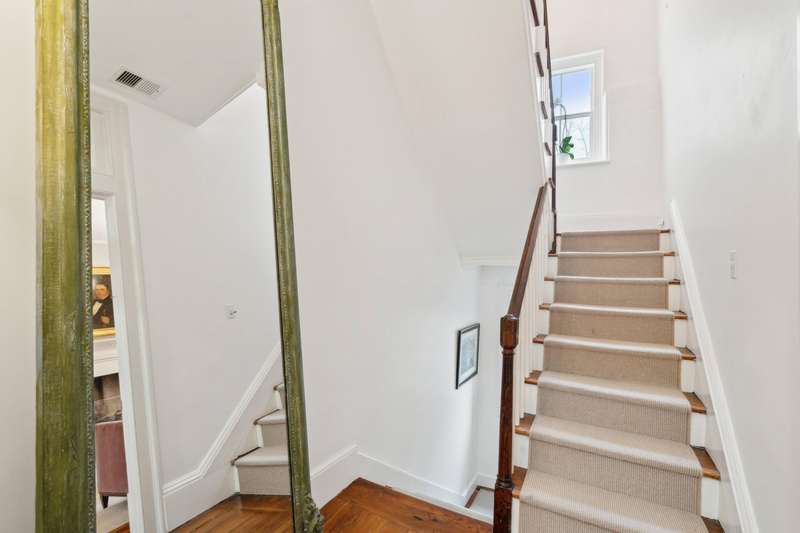 This beautifully restored 18th century solid masonry row house is the perfect perch within this walkable, picturesque, high-ground (X Zone) neighborhood. Handsomely presented, with luxurious finishes, flexible use space all overlooking surrounding courtyards and gardens. French doors lead to the private rear garden from the main level living room. The second level offers the primary suite, complete with an adjacent library for nighttime reading or enjoying a movie before bed. The third level features two comfortable guest bedrooms with a shared hall bath. On the fourth level, enjoy the additional space for an office or exercise area, or use as a fourth bedroom and bath.