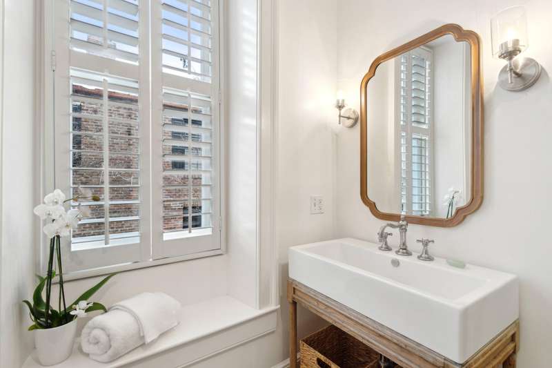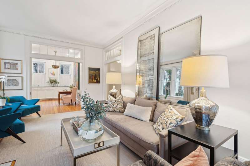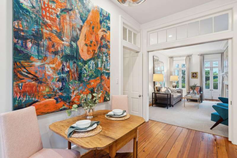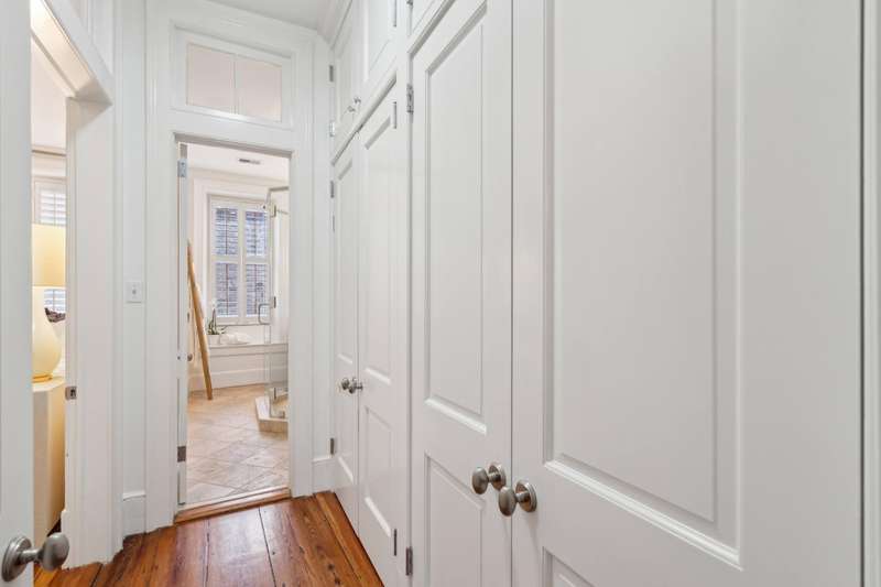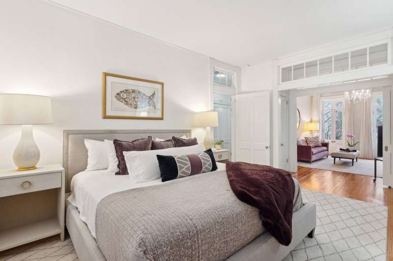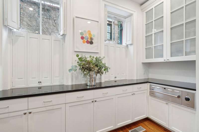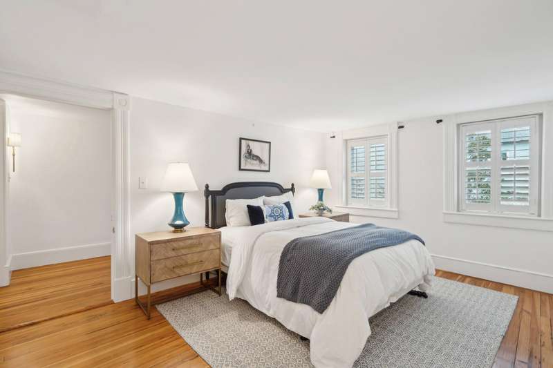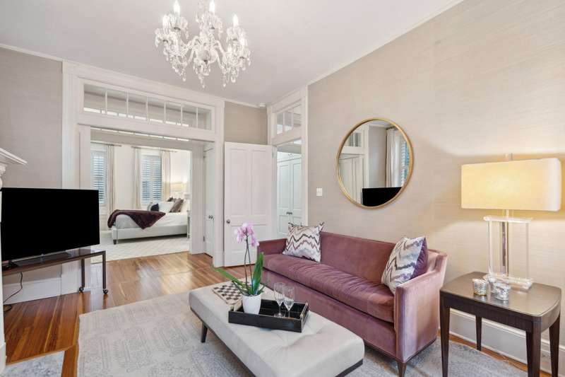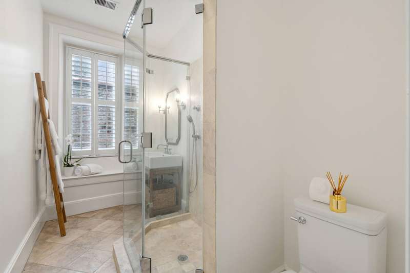 This beautifully restored 18th century solid masonry row house is the perfect perch within this walkable, picturesque, high-ground (X Zone) neighborhood. Handsomely presented, with luxurious finishes, flexible use space all overlooking surrounding courtyards and gardens. French doors lead to the private rear garden from the main level living room. The second level offers the primary suite, complete with an adjacent library for nighttime reading or enjoying a movie before bed. The third level features two comfortable guest bedrooms with a shared hall bath. On the fourth level, enjoy the additional space for an office or exercise area, or use as a fourth bedroom and bath.
