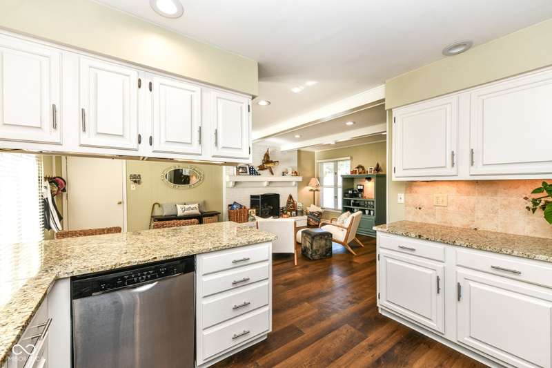 Custom built brick ranch with finished Basement situated on a large wooded cu-de-sac lot. Located in popular South Harbour this home backs to a heavily wooded nature area adjacent to Morse Reservoir. Bright and inviting home with many updates including exterior paint, interior paint, kitchen, guest bath, new flooring throughout, and new driveway. Open Family/Hearth Room with beam ceiling, and full Masonry gas fireplace. Spacious Kitchen with breakfast bar, granite counters, new/newer stainless appliances, and resurfaced cabinets. Formal Living Room and separate Dining Room open to large patio. Primary Bedroom with good closet space and lots of natural light. Two additional Bedrooms with adjacent hall bath. Finished lower level with Rec Room and Bonus room great for kids/grandkids. Good size 2 car Garage with keyless entry. It's an easy walk down the street to the Clubhouse, pool, tennis, park, and beach on Morse Reservoir. Green outbuilding in rear yard does not stay with the property......seller will be taking to their new residence.