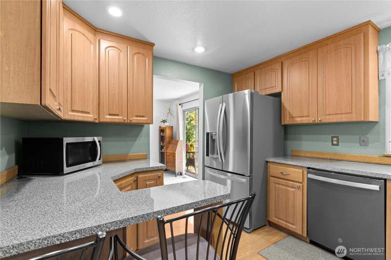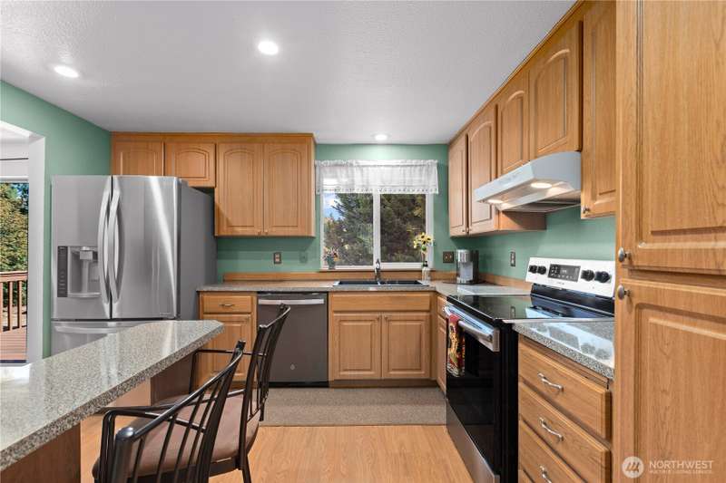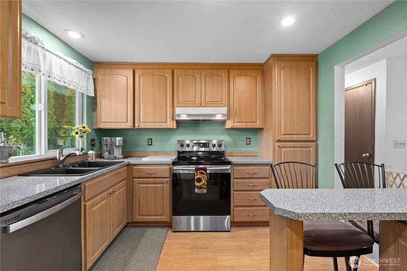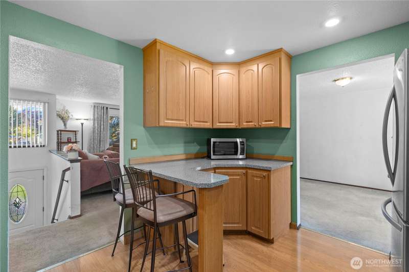 Nestled in a quiet cul-de-sac, this 4-bedroom split-level offers updates where it counts—roof, water heater, windows, exterior paint, Trex deck & more—so you can focus on making it yours. The versatile floorplan, 2-car garage w/ storage, and RV parking offer flexibility for any lifestyle. Enjoy a private, greenbelt-backed yard, ideal for berry picking, relaxing or entertaining on the spacious Trex deck. Close to trails, shopping, schools & freeways. Priced to give you room to personalize, this home balances functionality, location, and value in one rare find—don't miss it!