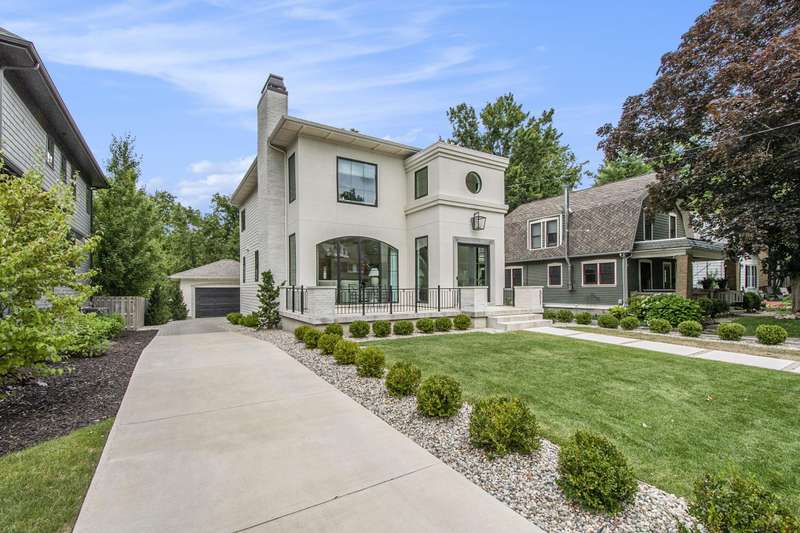 Better than new, custom 2022 built home with quality finishes in Gaslight Village. High ceilings, plaster finished hood, herringbone floors, marble countertops and slab backsplash in a stunning kitchen. Second working kitchen with unique but seamless amenities, along with a separate a bar area with beverage fridge, and ice-maker, make this home well suited to entertaining. Gorgeous windows and doors and a unique floorplan. Private primary suite with incredible dual closets, steam shower, heated floor and beautiful vanities, spacious laundry room and office/den with fireplace and built-ins. The basement level features two private bedroom and bath suites, family room with second wet bar, including refrigeration. Professionally landscaped yard with backyard patio and gas fire-pit. This stunning home in the heart of East Grand Rapids holds great potential and is well situated with ease of access to Gaslight Village shopping and restaurants, Eastown, downtown, all of Grand Rapids.