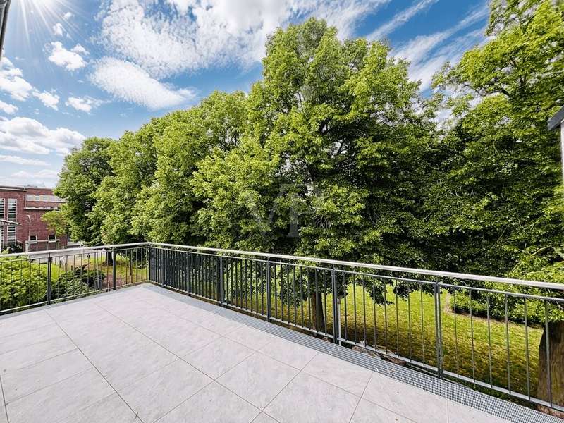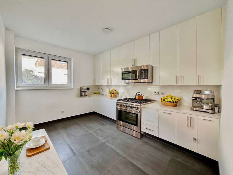 A modern semi-detached house is for sale, which impresses with its contemporary design and upscale furnishings. Built in 2024, the property is in new condition and promises a high level of living comfort in an attractive environment. The living space of approx. 200.56 m² extends over three floors and offers space for the whole family. Situated on a plot of around 256.47 m², the house comprises a total of five rooms, including three bedrooms and a spacious bathroom. In addition, a separate kitchen completes the room layout and offers enough space for culinary activities. The kitchen is functionally designed so that all work processes can be optimally organized. A modern central heating system in combination with an air heat pump ensures a pleasant living climate. The underfloor heating, which is installed in all living areas, ensures cozy warmth and a pleasant living atmosphere. The furnishings in the house are of exquisite quality. The large-format tiles and wood-look vinyl flooring are particularly noteworthy, creating a harmonious combination of classic design and modern accents. One of the highlights of this property are the floor-to-ceiling windows, which give the rooms plenty of light and an open atmosphere. In addition, all windows are fitted with electric shutters that can be conveniently controlled for added comfort. The large roof terrace offers an appealing outdoor retreat. A green flat roof contributes to the environmental friendliness of the house and supports the sustainable construction method. Two parking spaces are available for your vehicles, offering convenient parking options. This semi-detached house impresses with its well thought-out design and the use of high-quality materials. The solid staircase blends seamlessly into the overall picture and underlines the durability of the construction method. An elevator can be added on request. The building services and building design are state-of-the-art, which not only ensures efficiency but also high energy savings. If you are looking for a modern home that meets all the requirements of contemporary living, you should consider this property.