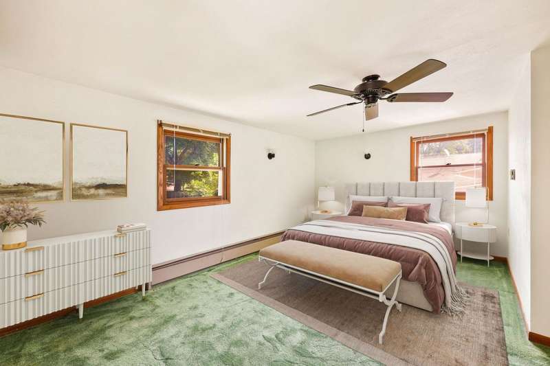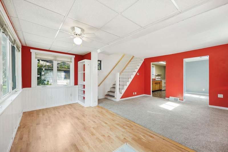 Charming and functional! This home features new carpet in the living room (2025), a new stair banister, and hardwood floors under the main-level carpet. The den/office off the living room and freshly painted kitchen adds to the appeal. Upstairs, the large primary bedroom, walk-in closet, a Juliet balcony, and a landing perfect for office space or a reading nook. AC units are WiFi-enabled for comfort and control. The lower level offers great space storage and room to tinker. In the backyard, enjoy a beverage on your large deck, a fully fenced backyard and shed for extra storage.