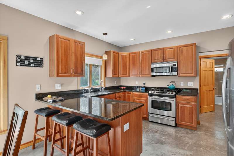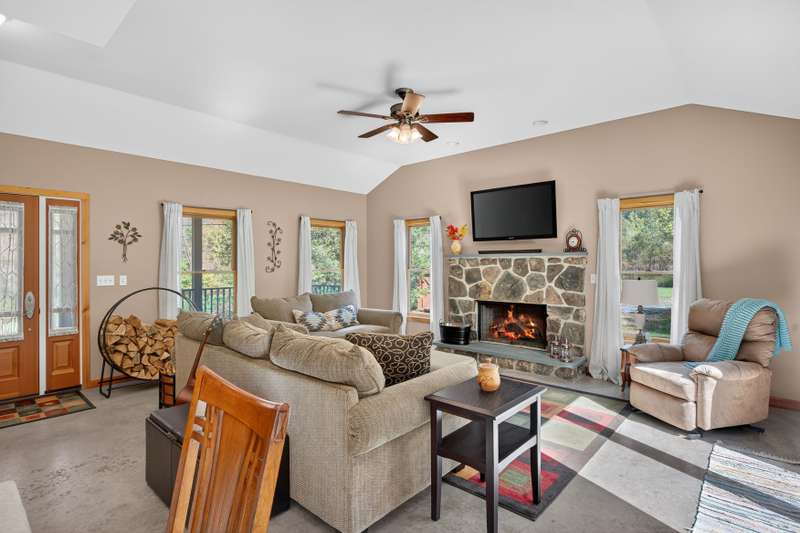 Catskills Creekside Modern Ranch Steps to Panther Mountain & Minutes to Belleayre. Ready to hit the slopes this winter? This beautifully crafted modern ranch puts you right in the heart of the Catskills. Perfectly situated just minutes from skiing at Belleayre Mountain, swimming at Belleayre Beach, and steps from the Panther Mountain trailhead, this home offers the ideal balance of serenity and convenience for year-round adventure. Built in 2008, the home features 3 bedrooms, 2 full bathrooms, and a bright open floor plan with 9-foot ceilings throughout and a dramatic 12-foot vaulted ceiling in the living room. Expansive 5-foot Andersen windows fill the space with natural light, while polished concrete floors and 3-zone radiant heat create a warm, comfortable atmosphere. The spacious living room centers around a striking wood-burning fireplace, perfect for cozy winter evenings. The primary suite offers a generous walk-in closet and a beautifully appointed en-suite bath. Outside, a large covered front porch overlooks a lush 1.22 acre lot that borders the scenic Esopus Creek, offering fly-fishing access and tranquil water views. The home is located on a well plowed county road and just a short walk to the Route 28 bus stop for easy travel to NYC. Can be sold fully furnished, this custom-built home reflects exceptional craftsmanship and thoughtful design, an inviting, low-maintenance retreat for both mountain getaways and full-time living.