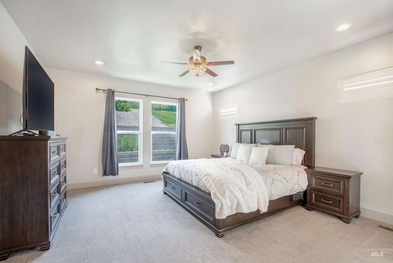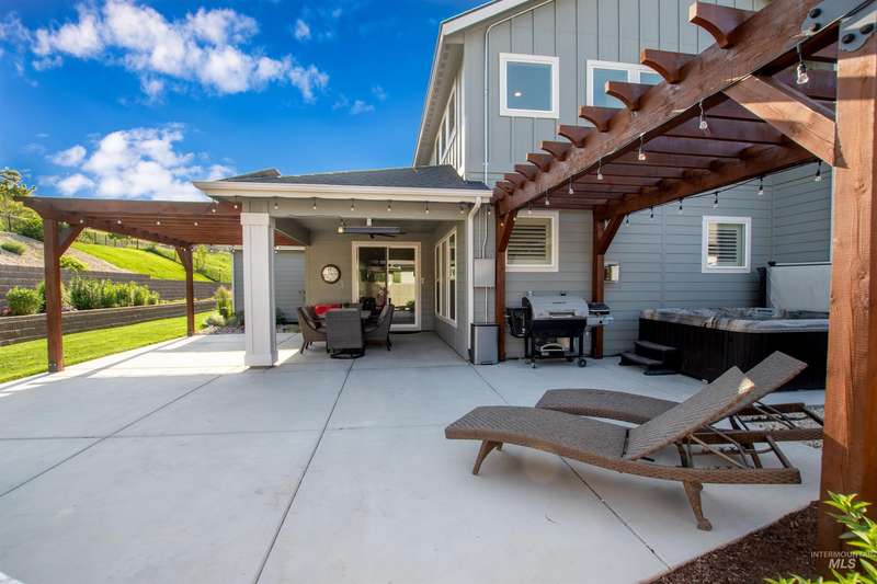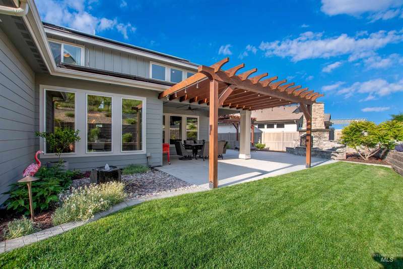 Nestled on a low traffic street in the sought-after Sky Mesa community with amenities such as 2 infinity pools, basketball court and playgrounds, this residence offers over $100K in professionally designed backyard landscaping creating a peaceful, park-like private retreat complete w/a covered patio, cozy fireplace, pergolas, tranquil fountain, Bluetooth-controlled lighting and no rear neighbors on this bigger .38 acre lot. An owned 11.78 kWh solar system ensures energy efficiency along with dual fuel heating. The expansive 1,375 sqft fully insulated heated 3 car tandem garage w/a 45-ft RV bay, epoxy flooring & loft offers exceptional versatility along with the behind the gate parking and RV dump. Inside, you'll find elegant finishes throughout, from granite surfaces & custom cabinetry to premium appliances. Enjoy the ease of main-level living with a private and comfortable primary suite as well as a flexible office or guest room that includes a closet, nearby full bath, and a tucked-away “secret room” — perfect for kids, hobbies, or extra storage. Upstairs offers three well-sized bedrooms, two full baths, and a large loft perfect for relaxing or entertaining. With an open-concept layout & additional living spaces, this home offers both comfort & flexibility for any lifestyle.