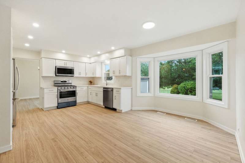 Completely renovated and move-in ready, this home combines modern updates with cozy spaces made for everyday living and entertaining. With over 2,000 square feet, it features 4 generously sized bedrooms, 2 full baths, and a convenient main-level powder room. The heart of the home is the beautifully updated kitchen, complete with all-new 2025 appliances and a stylish modern backsplash, perfect for preparing meals while staying connected to the family. Gather in the inviting family room where a warm, wood-burning fireplace sets the stage for movie nights and relaxing evenings. Hosting is a breeze with the living and dining room, offering an ideal space for celebrations and get-togethers. Upstairs, the spacious bedrooms provide comfort and flexibility for family, guests, or a home office. Fresh carpet, new flooring, and a freshly painted interior make the whole home feel bright and welcoming. The unfinished basement offers plenty of opportunity whether you dream of a game room, workout space, or simply need extra storage. Outside, your private fenced yard with a deck backs to open green space-perfect for sipping morning coffee, summer barbecues, or stargazing at night. With an attached 2-car garage for ample storage and Bode Lake's scenic trails just a short stroll away, this home truly offers the best of comfort, convenience, and community.