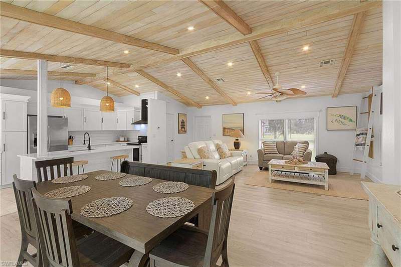 Redone from top to bottom, this coastal-chic retreat is nestled in one of the most desirable neighborhoods of SW Cape Coral. Completely renovated and not in a flood zone with all assessments paid, this home offers peace of mind and substantial savings. Step inside and experience the seamless blend of coastal charm and a great-room concept, with a stylish kitchen stainless appliances and a thoughtfully designed layout perfect for entertaining. The home includes three bedrooms, two beautifully updated bathrooms, one of which serves as a convenient pool bath and an open, airy floor plan filled with natural light. Outside, your private paradise awaits: an oversized pool with a spacious screened lanai and a shaded gazebo area, perfect for year-round outdoor living. Located just minutes from shopping, dining, and entertainment, this home truly checks all the boxes for comfort, style, and the Southwest Florida lifestyle. Schedule your private tour today!