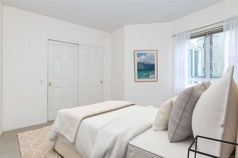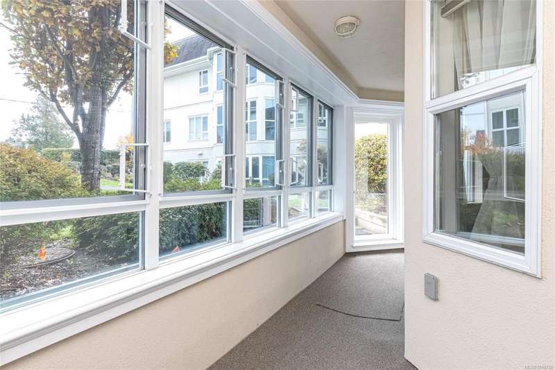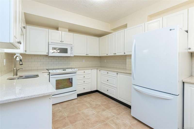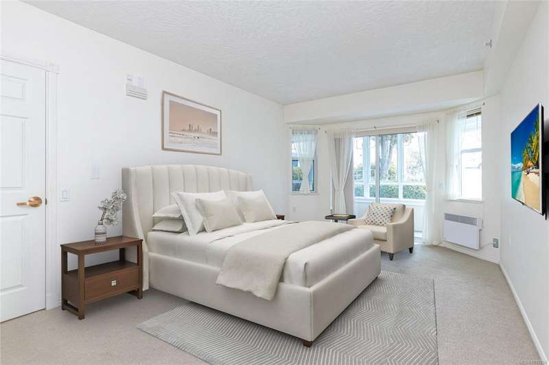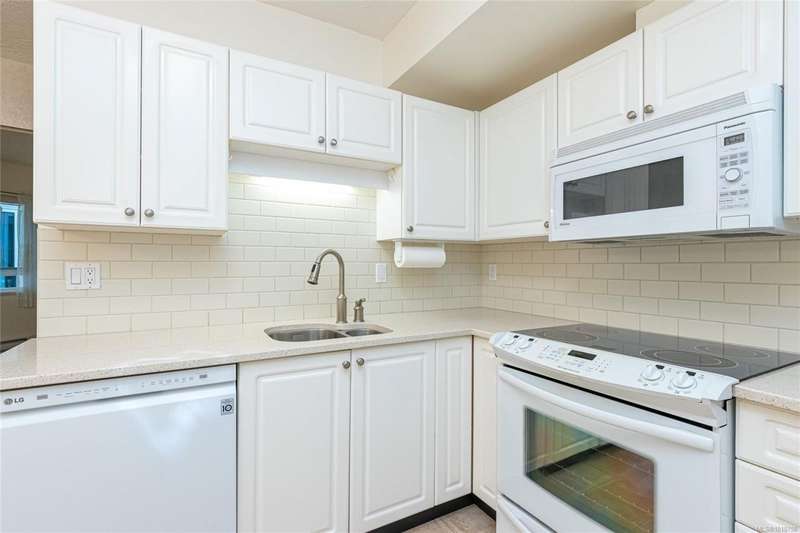 Welcoming two bedroom garden suite in the ever-popular Ophir Place. This very versatile floor plan includes a country kitchen with quartz counter tops and newer appliances, an updated bathroom with heated tile floors, large separate laundry room (not just a closet) and a super-sized primary bedroom with exterior access. You will enjoy the sense of community that Ophir Place offers through its many amenities: billiards room, fully equipped workshop, library, guest suite, exercise room and an updated events room. With this suite being on the garden level, you will have easy access to all the common areas as well as being able to step out into the garden area with your four legged friend! Strata Council has pro-actively maintained the building. Your strata fee includes hot water, basic cable, phone and internet. Within walking distance of shopping, transportation, restaurants and professional offices. Sorry, only those 55 and older need apply!