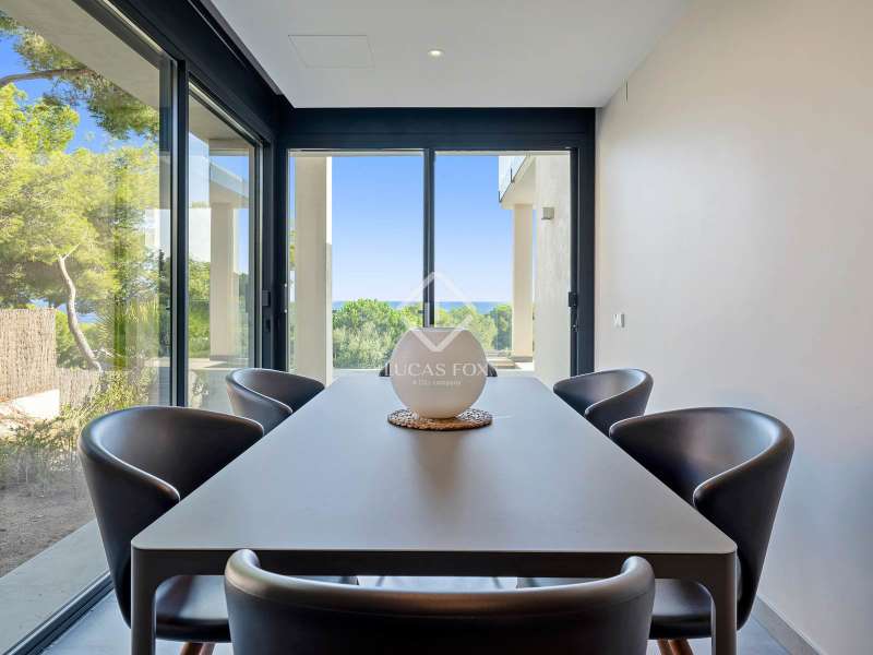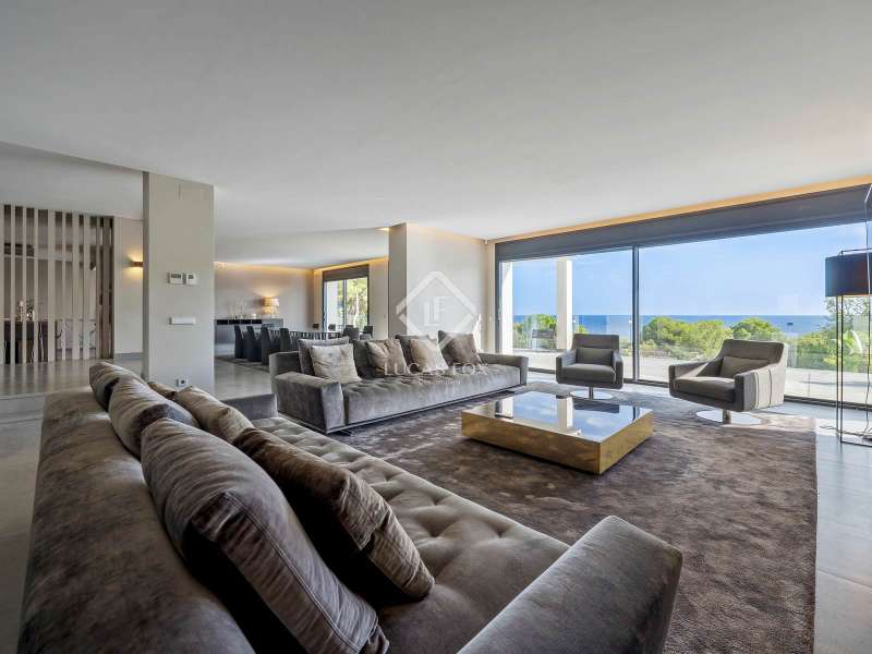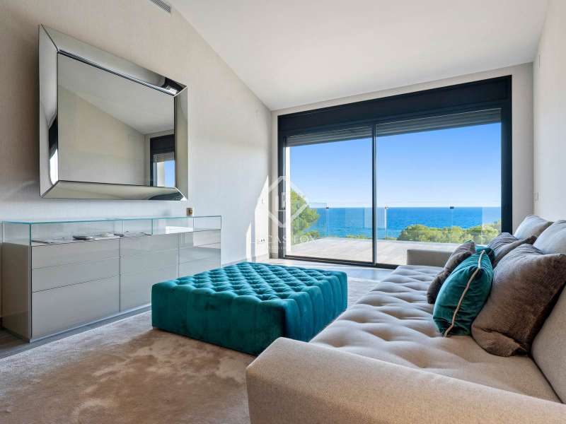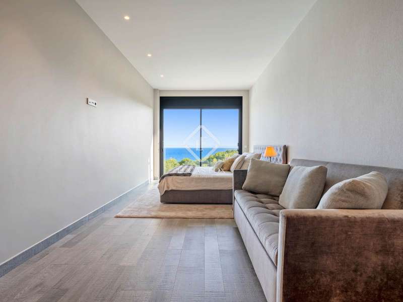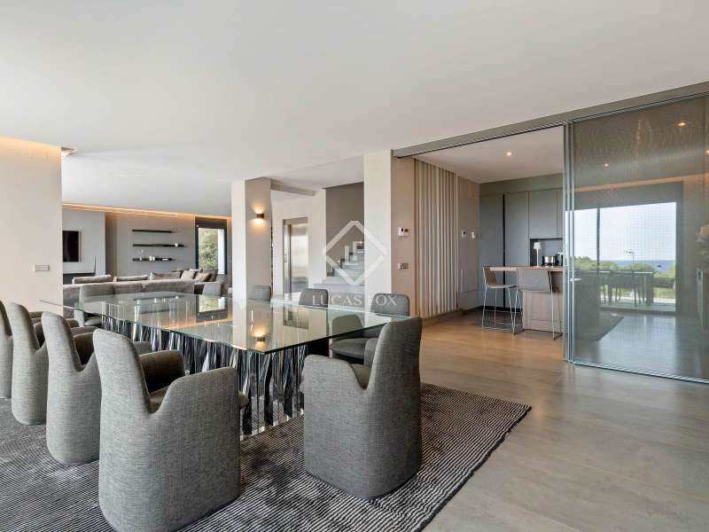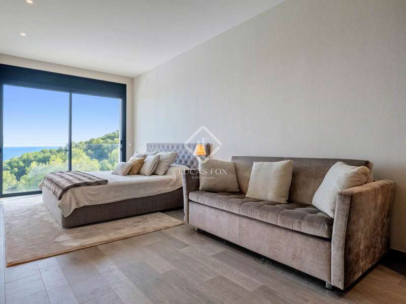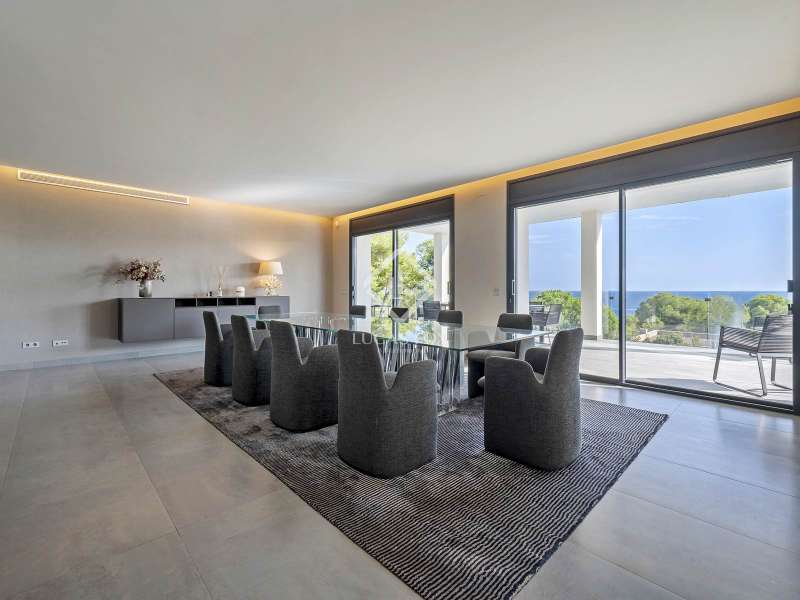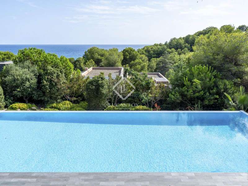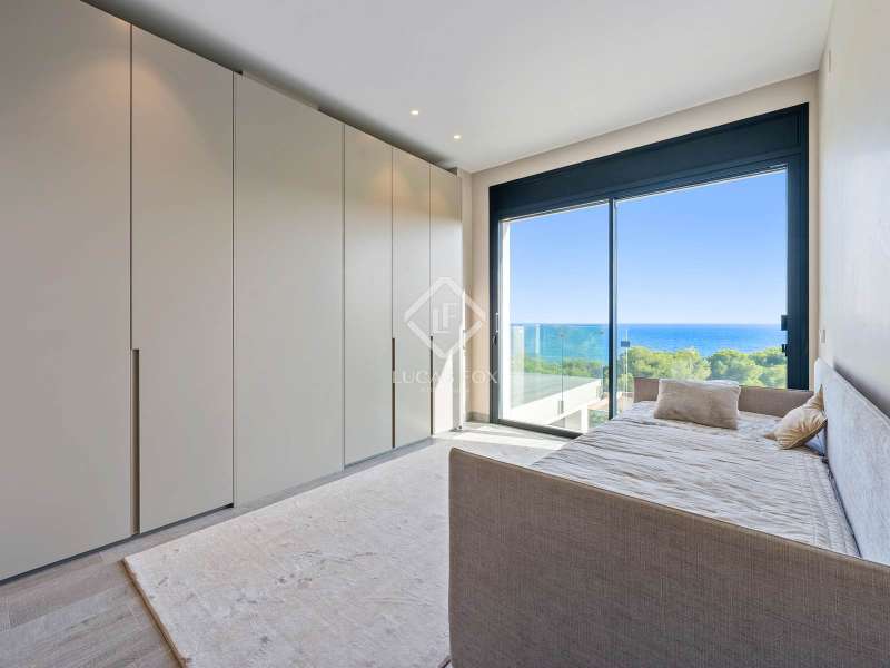 Lucas Fox presents this majestic luxury mansion with spectacular views of the Mediterranean Sea. This villa , measuring over 800 m2, built in 2016, combines the most valued elements to create the perfect home. Currently, it's probably the most exclusive villa on the Costa Dorada, and it's available to the most discerning buyer. This gem has been built in a unique location, facing the sea, surrounded by pine forests and just steps from Tamarit Cove. Its enormous infinity pool, exquisite garden with relaxation areas, and authentic spa guarantee maximum comfort in any season. The access to the property is striking and modern, characterized by clean lines and a minimalist design. As you approach the entrance, you're greeted by an imposing staircase leading to a large wooden door, which becomes the focal point of the space. Descending the stairs reveals a spacious, open-plan day area . The space is minimalist, without excessive decorations, allowing the architectural elements to take center stage. Neutral-toned decor predominates on the furniture and walls, creating a relaxing atmosphere. The main living room stands out for its spaciousness, offering a perfect place to relax and socialize in a luxurious setting. The open-concept space flows with a dining room for 10 and is connected to the kitchen. The kitchen is equipped with professional appliances , a breakfast bar, and an impressive central island that serves both as a cooking and informal dining room space. This entire day area features sliding windows and sunshades, allowing in abundant natural light and offering spectacular sea views, creating a serene and welcoming atmosphere. Furthermore, the main terrace is designed as a continuous space leading to the exterior. The elevator and designer staircase connecting the three floors complete this space. The upper floor features four luxurious en-suite bedrooms and their respective bathrooms. They are fitted with Porcelanosa ceramics, offering a premium experience with a perfect balance between superior quality and functionality. The bathroom fixtures add style and distinction to each space. The bedrooms have Poliform wardrobes, which provide ample storage and integrate perfectly into the home's modern design, offering functionality and elegance. The house has underfloor heating, ensuring a comfortable temperature throughout the year. Additionally, each room is equipped with individual air conditioning, allowing for customized microclimates tailored to each occupant's preferences. Additional amenities include a designer lighting system, a convenient laundry area and service room, state-of-the-art facilities designed for self-sufficiency, and a sophisticated security system. The property's exterior is equally impressive. The enormous saline infinity pool is a stunning space inviting you to enjoy the exterior and the climate, with various areas perfect for resting and relaxing. Not to mention the spa, the gym, and the wine cellar with a bar, which define this magnificent villa for those seeking luxurious and comfortable living with their loved ones. Request a personalized tour and be amazed by its balance of elegance and comfort in a peaceful enclave on the Costa Dorada, in harmony with the natural surroundings and the serenity of the landscape.