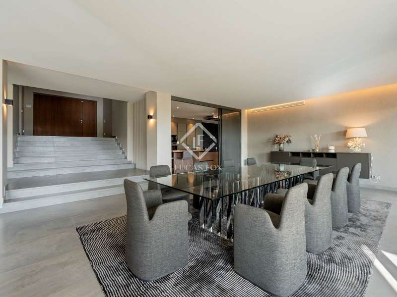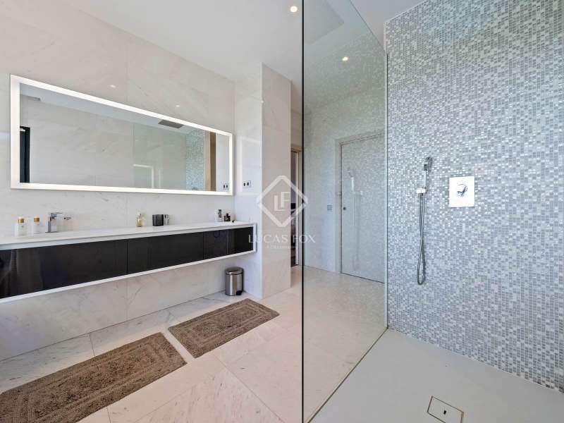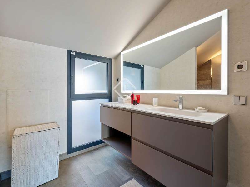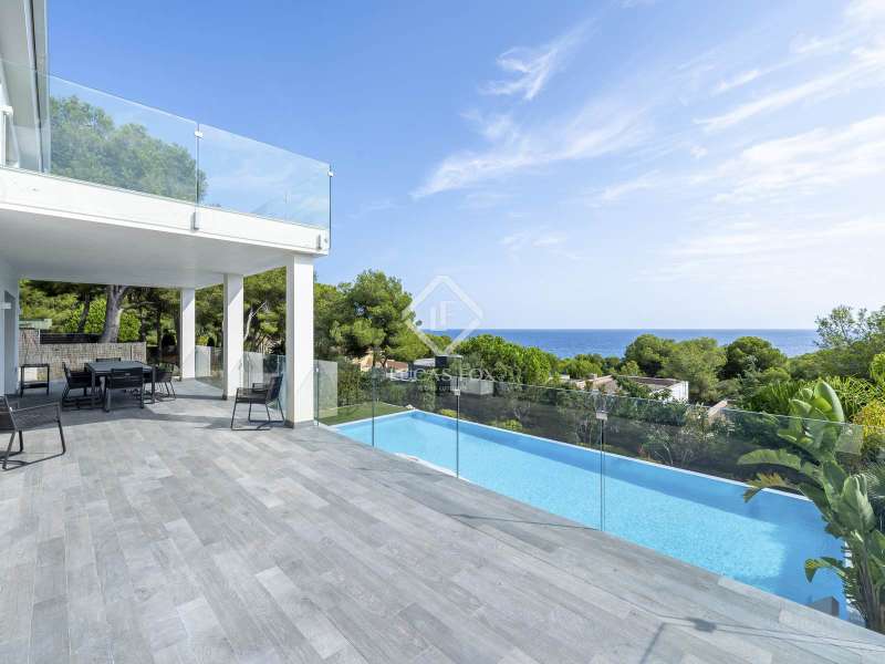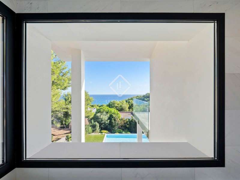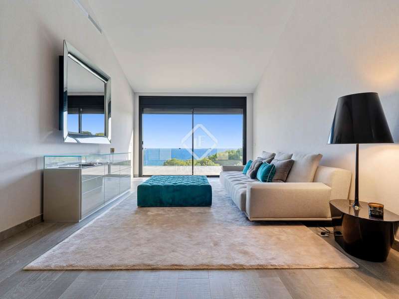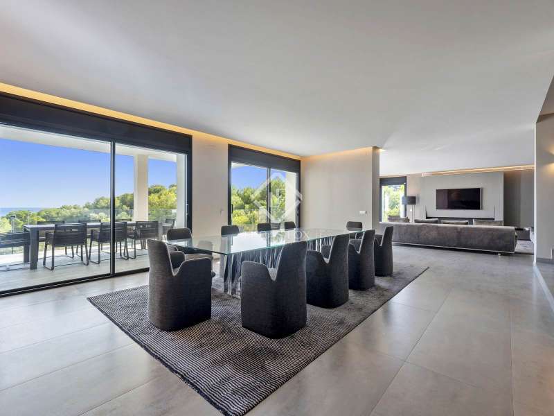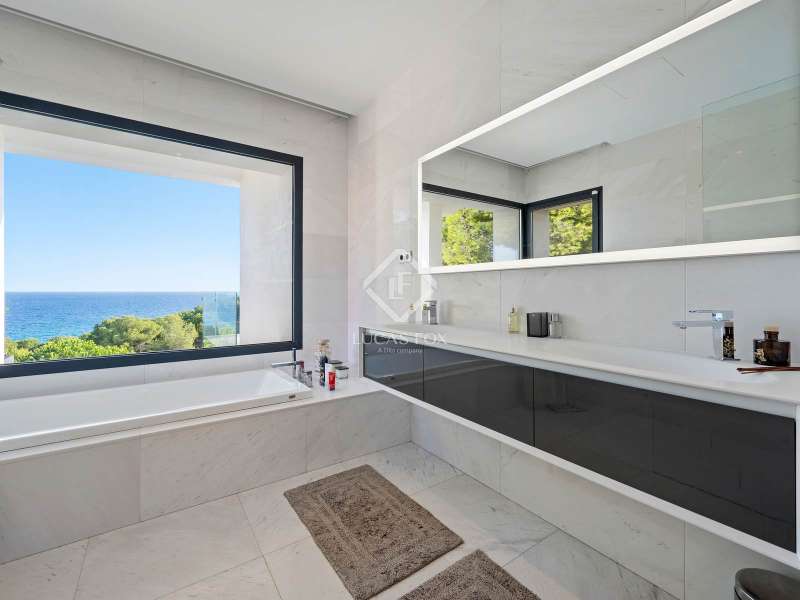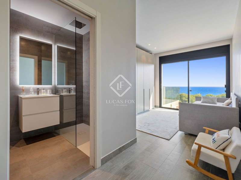 Lucas Fox presents this majestic luxury mansion with spectacular views of the Mediterranean Sea. This villa , measuring over 800 m2, built in 2016, combines the most valued elements to create the perfect home. Currently, it's probably the most exclusive villa on the Costa Dorada, and it's available to the most discerning buyer. This gem has been built in a unique location, facing the sea, surrounded by pine forests and just steps from Tamarit Cove. Its enormous infinity pool, exquisite garden with relaxation areas, and authentic spa guarantee maximum comfort in any season. The access to the property is striking and modern, characterized by clean lines and a minimalist design. As you approach the entrance, you're greeted by an imposing staircase leading to a large wooden door, which becomes the focal point of the space. Descending the stairs reveals a spacious, open-plan day area . The space is minimalist, without excessive decorations, allowing the architectural elements to take center stage. Neutral-toned decor predominates on the furniture and walls, creating a relaxing atmosphere. The main living room stands out for its spaciousness, offering a perfect place to relax and socialize in a luxurious setting. The open-concept space flows with a dining room for 10 and is connected to the kitchen. The kitchen is equipped with professional appliances , a breakfast bar, and an impressive central island that serves both as a cooking and informal dining room space. This entire day area features sliding windows and sunshades, allowing in abundant natural light and offering spectacular sea views, creating a serene and welcoming atmosphere. Furthermore, the main terrace is designed as a continuous space leading to the exterior. The elevator and designer staircase connecting the three floors complete this space. The upper floor features four luxurious en-suite bedrooms and their respective bathrooms. They are fitted with Porcelanosa ceramics, offering a premium experience with a perfect balance between superior quality and functionality. The bathroom fixtures add style and distinction to each space. The bedrooms have Poliform wardrobes, which provide ample storage and integrate perfectly into the home's modern design, offering functionality and elegance. The house has underfloor heating, ensuring a comfortable temperature throughout the year. Additionally, each room is equipped with individual air conditioning, allowing for customized microclimates tailored to each occupant's preferences. Additional amenities include a designer lighting system, a convenient laundry area and service room, state-of-the-art facilities designed for self-sufficiency, and a sophisticated security system. The property's exterior is equally impressive. The enormous saline infinity pool is a stunning space inviting you to enjoy the exterior and the climate, with various areas perfect for resting and relaxing. Not to mention the spa, the gym, and the wine cellar with a bar, which define this magnificent villa for those seeking luxurious and comfortable living with their loved ones. Request a personalized tour and be amazed by its balance of elegance and comfort in a peaceful enclave on the Costa Dorada, in harmony with the natural surroundings and the serenity of the landscape.