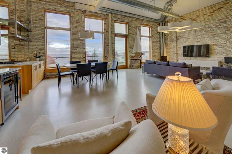 Stunning, modern downtown condo with sweeping views of the bay. This architectural contemporary marvel delights in every category; the views (both sunrise and sunset), the location, the 12 foot ceilings, the wall of windows overlooking the water - and all the touches in between. A dream downtown perch - walk out your door and you're at one of your favorite restaurants, a half block from the beach, the marina, the TART trail and all the shopping and entertainment the heart desires. A large balcony overlooks the river, beaches and water - all with an unexpected sense of privacy. Come see - you will love it!