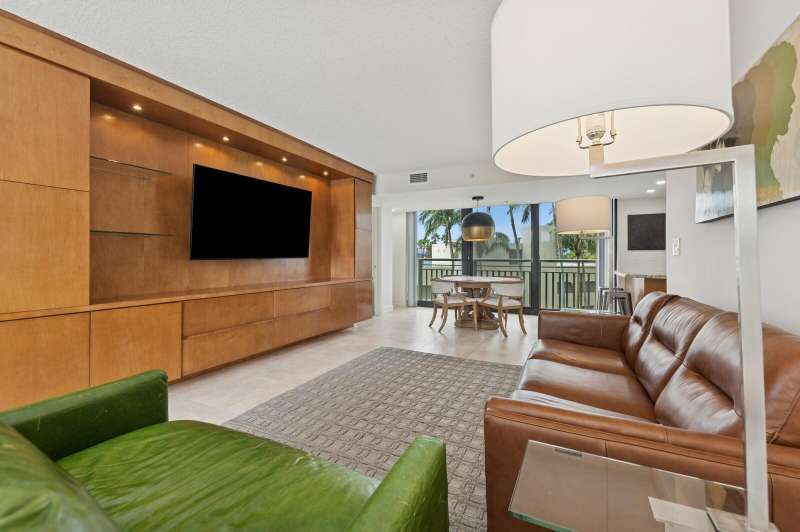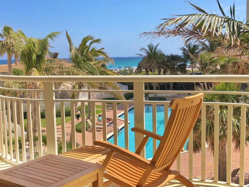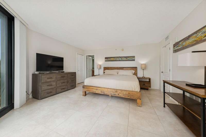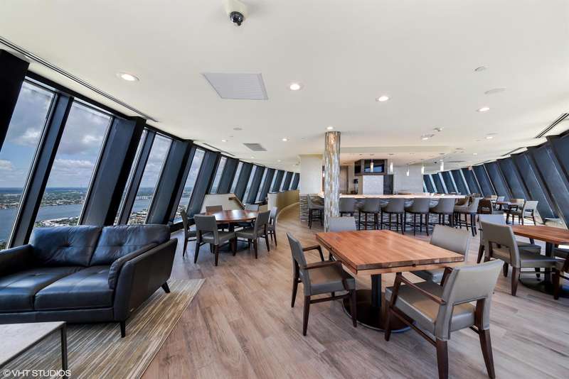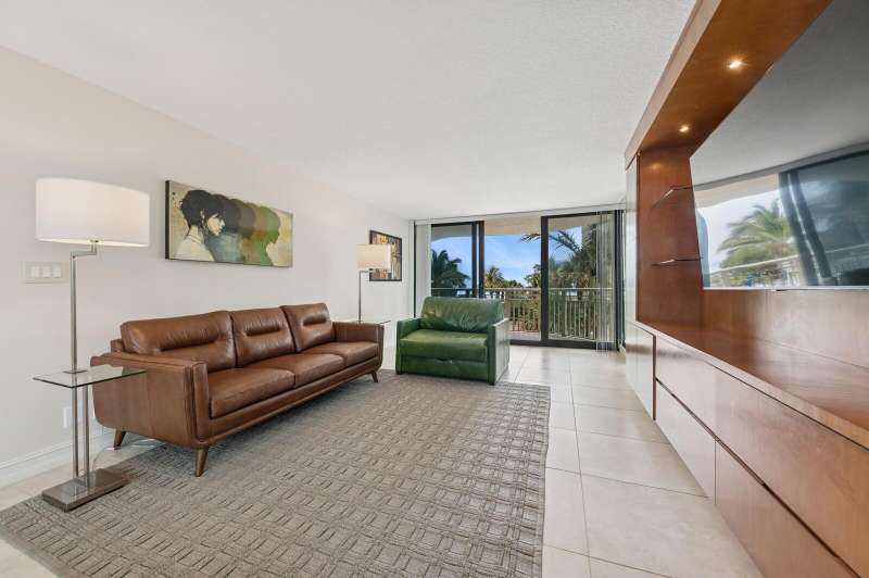 Inviting, furnished 2BR, 2BA condo with ocean and palm tree views. Split floorplan with tile flooring throughout. Floor-to-ceiling impact glass sliders open to a spacious balcony. The kitchen features granite countertops and SS appliances. A laundry closet includes a washer/dryer. The 2nd BR serves as both a home office and guest BR, with a bed and built-in desk. Tiara offers a resort-like lifestyle with valet, 24/7 concierge, and secure entry. Residents enjoy a heated pool, jacuzzi, tennis and pickleball courts, fitness centers with steam rooms and saunas, a billiard room, library, and card room. On-site dining includes the 43rd-floor Marquis Lounge with 360-degree views or the poolside Gazebo. Premier shopping, dining, and entertainment are just 15 mins away, and PBI airport is 25 mins.