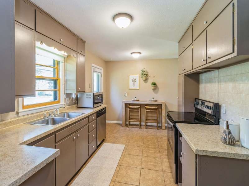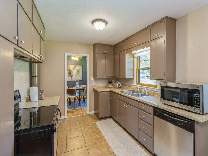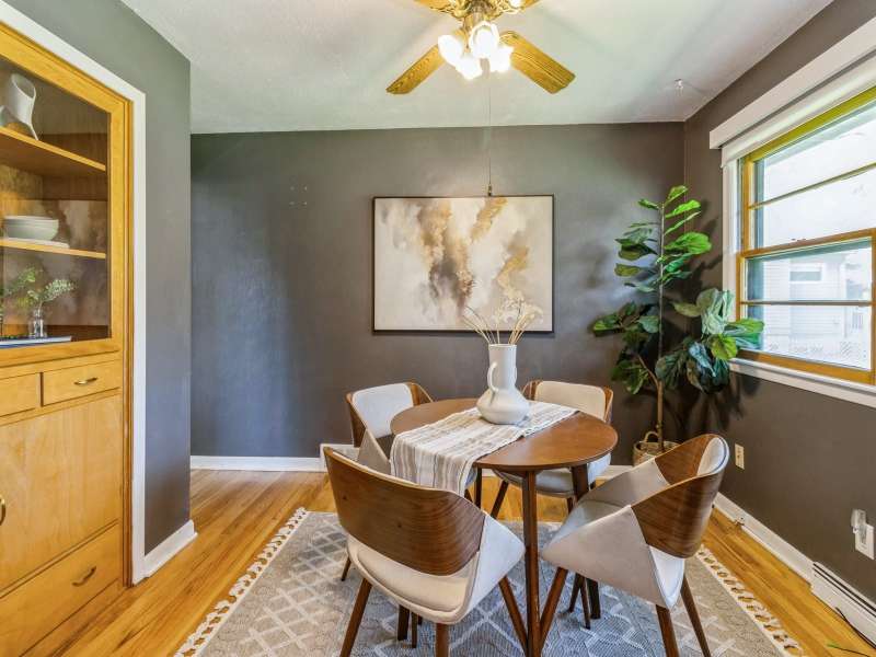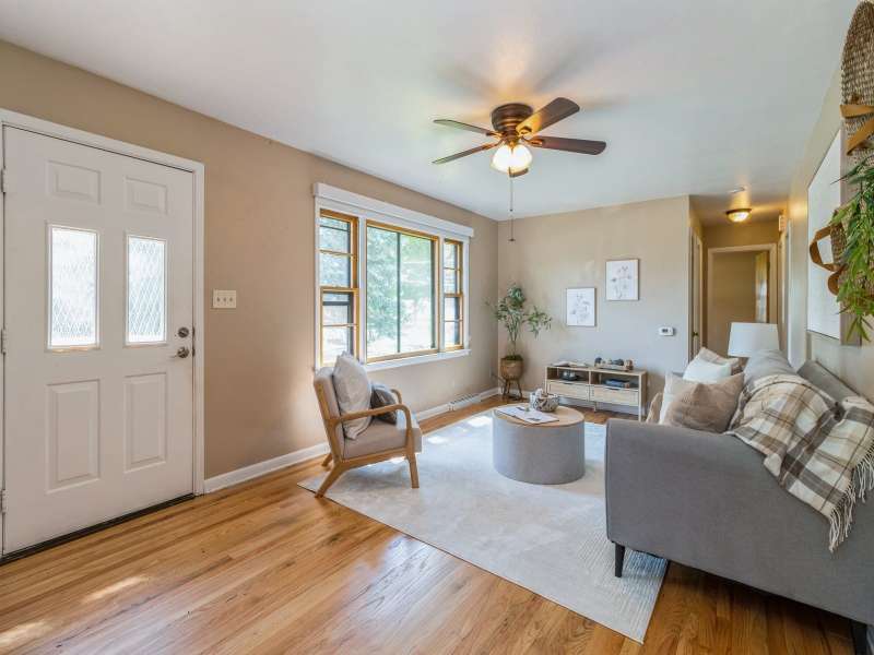 Updated 3BR (3rd bedroom currently used as dining space) ranch on the Northside of town, ready for you! You will notice the new exterior paint & brand-new roof right away. Walk thru the front door and you'll find beautifully refinished hardwood floors on much of the main level & custom window treatments. Kitchen & dining area feature tile floors, neutral countertops & stainless appliances, all included. Main level full bath plus 1st floor laundry hook ups (also available in the LL) w/ washer and dryer included for convenience. Lower level has rec room finish + bath. 1 car attached garage with additional driveway parking and fully fenced flat yard. Close to Buxton Park, Simpson College & Indianola shopping. Home warranty added for peace of mind.