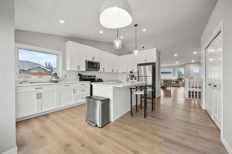 OPEN HOUSE THIS SATURDAY SEPT. 27th from 12-2pm! Welcome to this exquisite NEW BUILD BUNGALOW! With over 2300+ sq ft of living space and 5 bedrooms! Enjoy VAULTED CEILINGS that create a bright and airy ambiance, enhanced by stunning luxury vinyl plank floors. The heart of the home is a spacious, inviting kitchen, ideal for culinary adventures and entertaining guests. The open floor plan design seamlessly connects the living areas, featuring a cozy fireplace with a mantle, perfect for those relaxing evenings. With three luxurious bathrooms, convenience is always at your fingertips. The fully finished lower level offers additional living space, making it perfect for families or hosting visitors. Step outside to enjoy the ENORMOUS 7500+sq ft lot!!! Outdoor living is welcomed on the expansive deck or the charming front porch, perfect for sipping morning coffee or unwinding at the end of the day. The attached garage provides both convenience and storage. This home is professionally landscaped and fully fenced, ensuring privacy while enhancing its curb appeal. Future backyard views will be greenspace and a pond! Call your favorite realtor for a showing today!