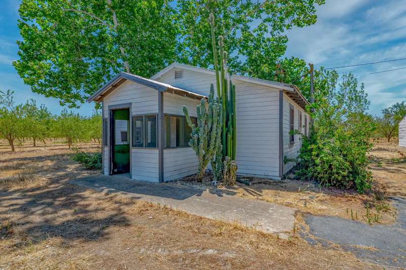 Beautiful 5-bedroom, 3-bathroom home featuring a separate guest house, 3 barns, garage and 3 shops. Thoughtful wall texture, bathroom, flooring, and kitchen renovations throughout blend modern comfort with timeless charm. Nestled on approximately 39 acres of producing almonds, this property also includes two ag wells and a domestic well. A perfect blend of agricultural potential and serene country living. (Buyer to investigate availability of surface water and possible surface water rights.) Tax Records show different number of bedrooms (buyer to investigate). Sq ft, bed count, bath count, and year built of ADU not available on tax records, buyer to verify if important.