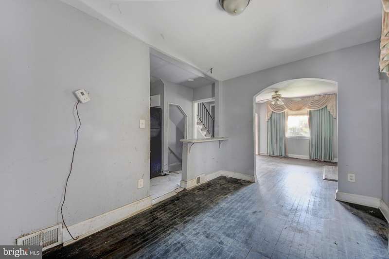 This all-brick end-unit rowhouse offers an exceptional opportunity for a complete transformation. The property is a shell, ready to be remodeled from top to bottom, giving a buyer or developer the chance to create something truly special. What makes this home unique among others in the neighborhood is its main-level addition adding square footage and two bedrooms. This expanded floor plan provides flexibility for a variety of layouts, whether it's used as a spacious primary suite, a guest room, or even a home office.