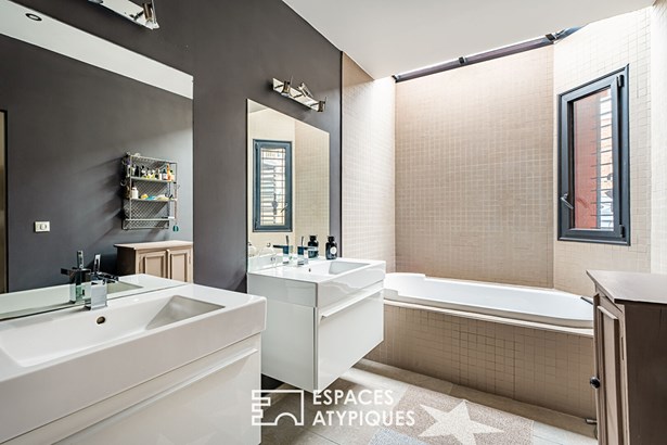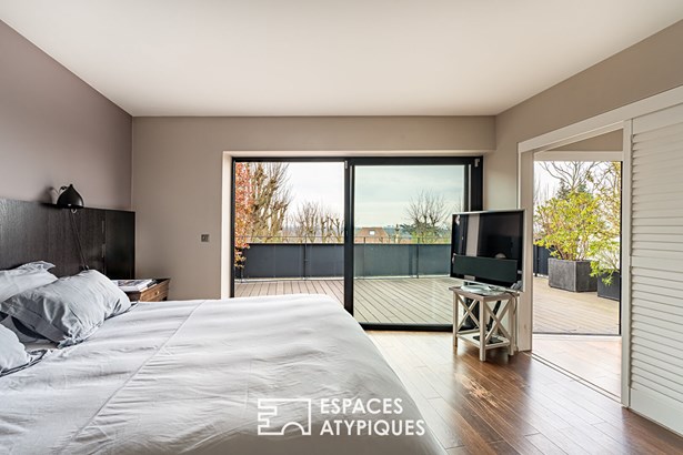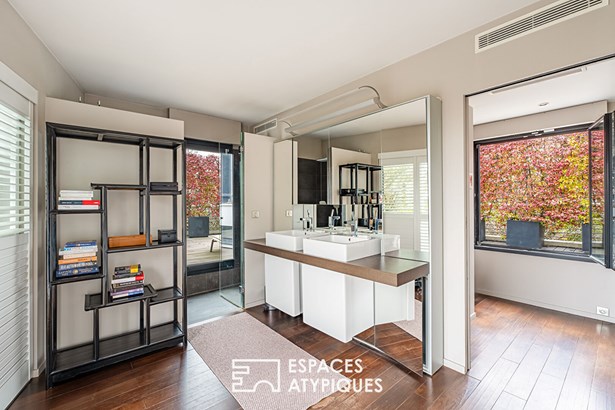 On the upper floor, a master suite with dressing room, shower room and separate toilet, is extended by a 30m2 terrace offering a breathtaking view of Paris and the Eiffel Tower. A second, more intimate 70m2 terrace is ideal for sunbathing or moments of relaxation in complete tranquility.