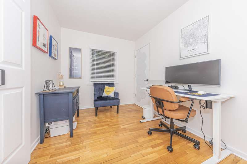 Experience Ann Arbor living at its best--just steps from the Big House! This charming, move-in ready home blends timeless curb appeal with modern upgrades. A white picket fence and spacious backyard create the perfect setting for barbecues or game day gatherings, complete with electrical upgrades, mounted TV, and speakers for entertaining. Inside, the light-filled living room features gleaming hardwood floors and recessed lighting. The upgraded kitchen boasts granite countertops, stainless steel appliances, rich cabinetry, and durable flooring. All three bedrooms continue with hardwood floors, while the refreshed main bath includes a sleek vanity, fresh tile, and a reglazed tub. Downstairs, the incredible finished basement is more than extra space, it's an escape. Outfitted with luxury vinyl flooring and a high-end full bath with a tiled walk-in shower, modern vanity, and designer fixtures, this retreat is perfect for guests, hobbies, or quiet nights in. Recent improvements bring Recent improvements bring peace of mind, including a new 150-amp electrical panel (2023), dual-pane windows, fresh exterior paint (2023), gutter covers, updated landscaping, and new window treatments. With its spacious yard for entertaining, luxurious lower-level retreat, and unbeatable location, this home offers the ideal mix of comfort, style, and everyday convenience. Home Energy Score of 4. Download report at stream.a2gov.org.