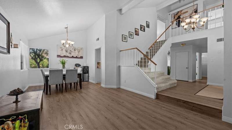 The inviting entryway showcases a graceful switchback staircase that opens to a bright and spacious living and dining area -- perfect for entertaining. A comfortable family room with a fireplace adjoins the kitchen, creating a warm and open gathering space. Nearby, you'll find a half bath, a large laundry room, and direct access to a three-car garage that has a new water heater.