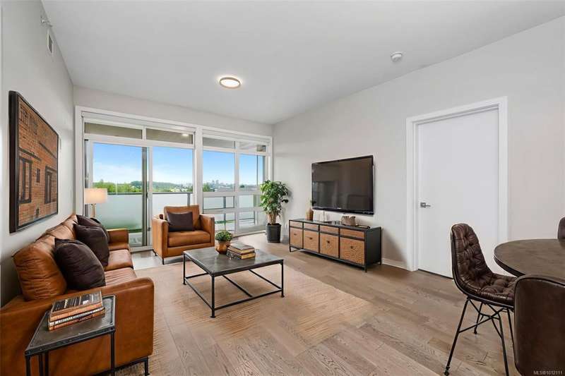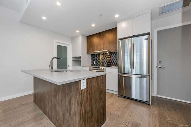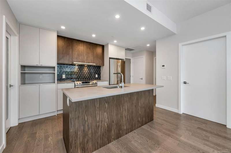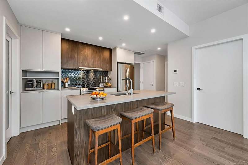 OPEN HOUSE Sat&Sun@1-3pm.Welcome to The 881 ? Uptown's Premier Condo Living!Discover masterful design and modern luxury in this top-floor, south-facing corner unit offering 2 bedrooms and 2 bathrooms. Perfectly located, 'The 881 is just steps to Uptown and Mayfair Shopping Centres, cafes, restaurants, fitness studios, parks, and walking trails. With a walk score of 91, everything you need is right at your doorstep. Inside, the home boasts an open and airy layout highlighted by hardwood floors, stainless steel appliances, quartz countertops, and a sleek modern kitchen. Comfort is assured year-round with a VRF heat pump system providing efficient heating and cooling.Residents enjoy outstanding building amenities including a spacious alfresco deck for entertaining, rooftop garden plots, centralized gas hot water and secure underground parking.This home combines stylish modern finishes with unbeatable location and top-floor privacy?an exceptional opportunity for both homeowners.