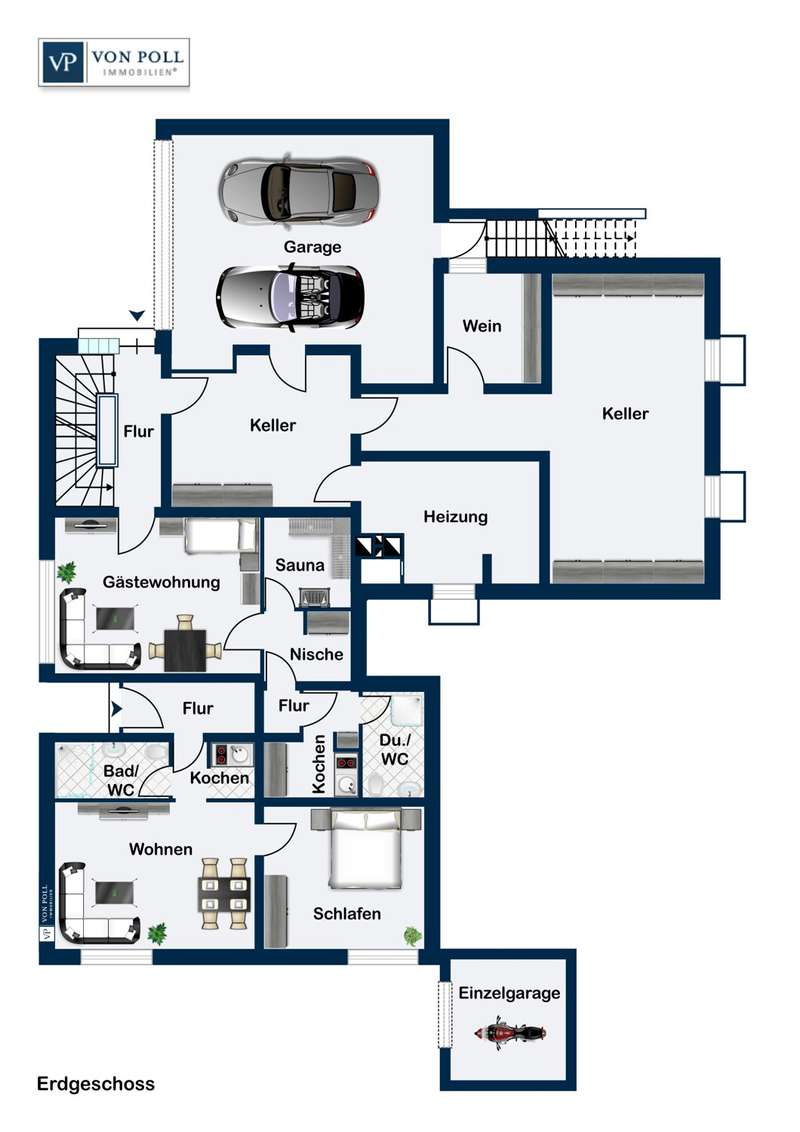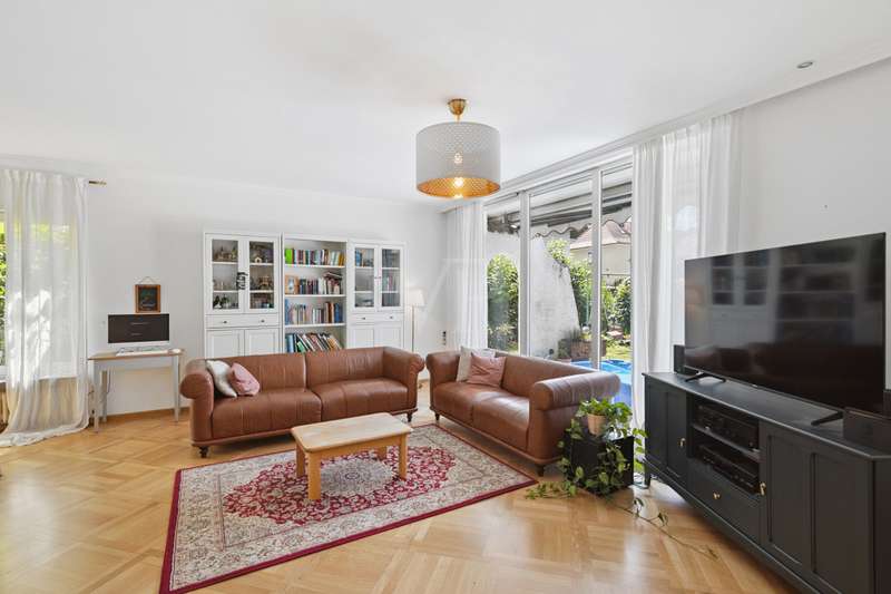 Modern living in an idyllic suburban setting - welcome to your new home In the sought-after suburban location of Homburg, this spacious detached house with granny apartment is the ideal home for families who appreciate living comfort, location advantages and a variety of spaces. On a living space of approx. 200 m² and a plot of approx. 727 m², a flexible range of rooms for a variety of living concepts unfolds. Upon entering the property, a central advantage becomes immediately apparent: the entire living area is on one level - thoughtfully designed and harmoniously interconnected. An inviting hallway welcomes you with a brick fireplace element that serves as a stylish eye-catcher. The spacious living area with high-quality parquet flooring and floor-to-ceiling windows creates a bright, friendly atmosphere at any time of year. From here, you have direct access to the adjoining terrace area, which seamlessly extends the living space into the open air. The adjoining kitchen in a timeless beech look blends harmoniously into the living area and, together with the dining area, provides a cozy hub for everyday family life. From there, there is also practical access to a storage room, which creates additional storage space for provisions or household utensils. Three flexibly usable children's or study rooms are complemented by a spacious parents' area, which has a separate dressing room and access to the main bathroom with shower and bathtub. This living level is rounded off by a practical checkroom area and a guest WC. The detached house also has a separately accessible granny apartment on the first floor, which has two rooms, a shower room and a small fitted kitchen. The property also has a partial basement with three cellar rooms on one side and a boiler room with heating oil tanks. There is also a cleaned, decommissioned oil tank in the garden. On the other side there is a separate guest area with sauna, shower room and kitchen connection. The offer is rounded off by a total of three garages - a double garage and a single garage. Discover a sophisticated home that ideally combines tranquillity, quality of living and a location close to the city. The immediate proximity to Homburg University Hospital makes this property particularly attractive for families of doctors and medical professionals. We would like to invite you to take a closer look at this offer at a personal viewing appointment. We look forward to hearing from you.
