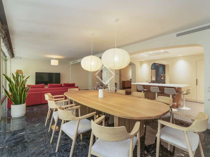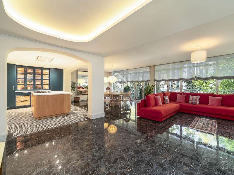 This exclusive apartment, recently renovated with impeccable taste, combines style, comfort and charm in every detail. The property stands out for its spacious living area with an open kitchen, a open-plan and airy space designed for enjoyment and sharing, where high-quality finishes and harmonious materials create a unique atmosphere. It has three carefully renovated bedrooms, all designed to offer well-being and functionality, as well as two modern bathrooms that complete the layout with a sophisticated touch. The apartment has two private terraces, one of them extraordinarily spacious, ideal for creating well-being and functionality, in addition to two modern panels that complete the layout with a sophisticated touch. The apartment has two private terraces, one of them extraordinarily spacious, ideal for creating different outdoor environments: a chill-out area , an exterior dining room or simply a perfect corner to relax and enjoy the light and tranquility. Overall, a property that captivates with its style, elegance, and open spaces, ideal for those seeking a home with personality and charm. Upon entering the property, we are welcomed by a spacious and inviting entrance hall that leads to a very bright, generously sized dining room living room with an open-plan kitchen, recently renovated with taste and fully equipped, and with direct access to a balcony. In the night area we have three bedrooms, one of them very spacious, with a dressing room, private bathroom and direct access to a very large terrace. The apartment is decorated with a very elegant and pleasant color scheme, in addition to the high-quality finishes and materials that we see throughout the property. This exquisite property is completed by a parking space and storage room. Building with concierge service.
