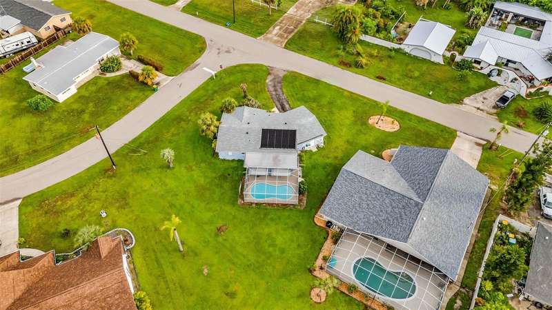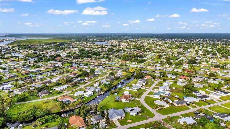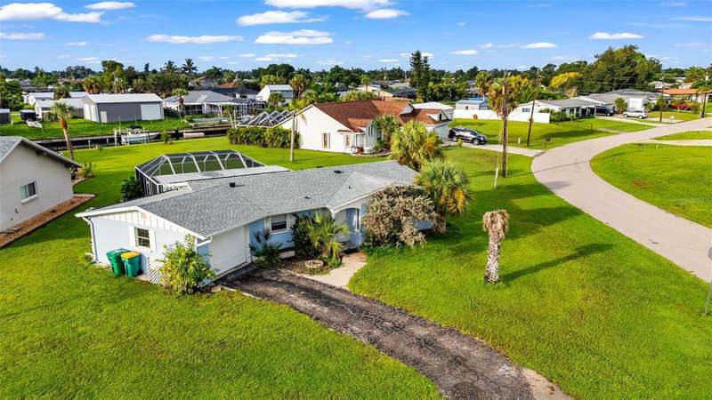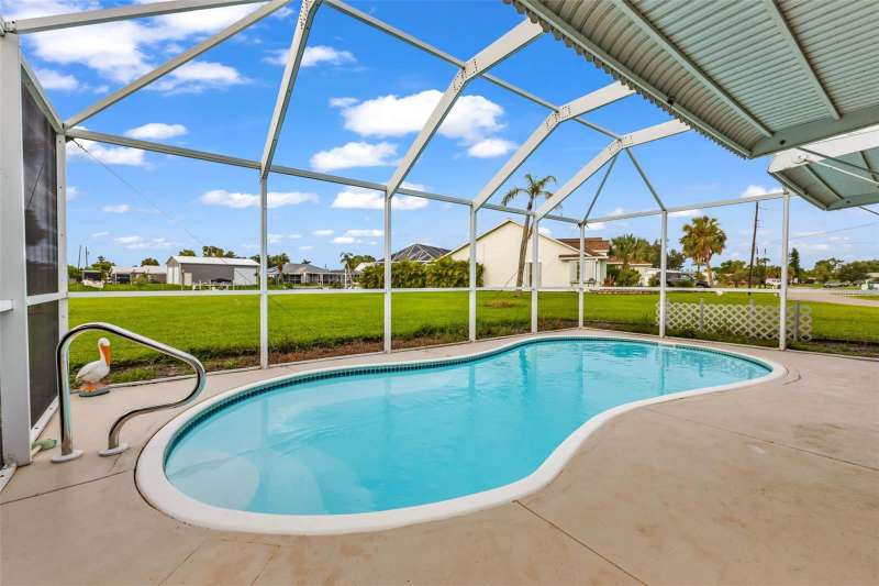 Pride of Ownership gleams through every detail of this charming Southwest Florida cottage, perfectly placed on an oversized corner lot. Blending timeless quality with the relaxed SWFL Island lifestyle, this home offers the best of both worlds. Inside, the true star is the original terrazzo floors, polished to perfection and glowing with character that endures. Sunlight dances across these gleaming floors, highlighting spacious living and dining areas that connect seamlessly with the kitchen and Florida room. 2 comfortable bedrooms and 2 full baths provide space for family and guests, while the the 2023 shingle roof shelters you overhead with the garage and laundry area adding convenience. Outdoors, the magic continues. Picture yourself sipping morning coffee in the shade of your lanai, or enjoying an ice-cold umbrella drink by the sparkling screened pool, as you take in peaceful canal views. All the beauty of the water is yours without the higher costs of direct frontage. And with a history of never flooding, this home brings both charm and peace of mind. Conveniently located near Port Charlotte Beach Park, boat ramps, shopping, and dining, this home is also just over the bridge to the award-winning Punta Gorda small-town food scene. Here, lifestyle, comfort, and community come together in one perfect package. It’s time to stop dreaming and start LIVING your slice of Florida paradise sunshine days today!