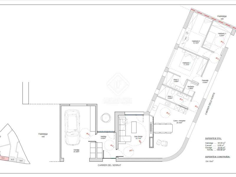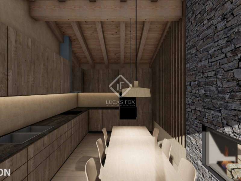 Development of new build in the town of Bor, Bellver de Cerdanya. Construction of four semi-detached houses on an area of 2,047m2. It is characterized by its high quality materials and its perfect integration into a natural environment so as not to hinder the landscape. This linear design differentiates it from the rest of the properties since it seeks to make maximum use of a good orientation and thus obtain optimal performance in energy efficiency. This property called H2, contains a constructed area of 154.16m2 In the plans you can see that it consists of three bedrooms, one of them with an en-suite bathroom . Two bathroom, kitchen- dining room, living room, space for laundry area and garage. Garden and green spaces that surround it to make this house the house of your dreams. The price of each property starts at €576,000 depending on the location and characteristics of each specific property. For more information, contact us directly.