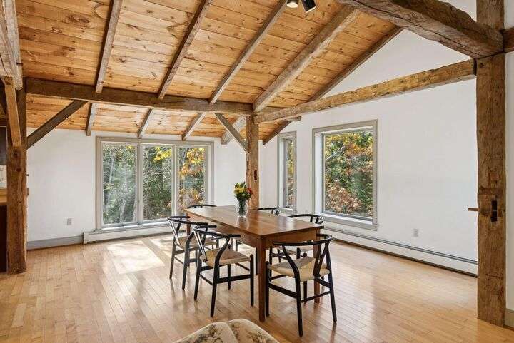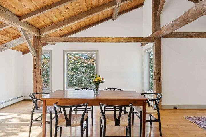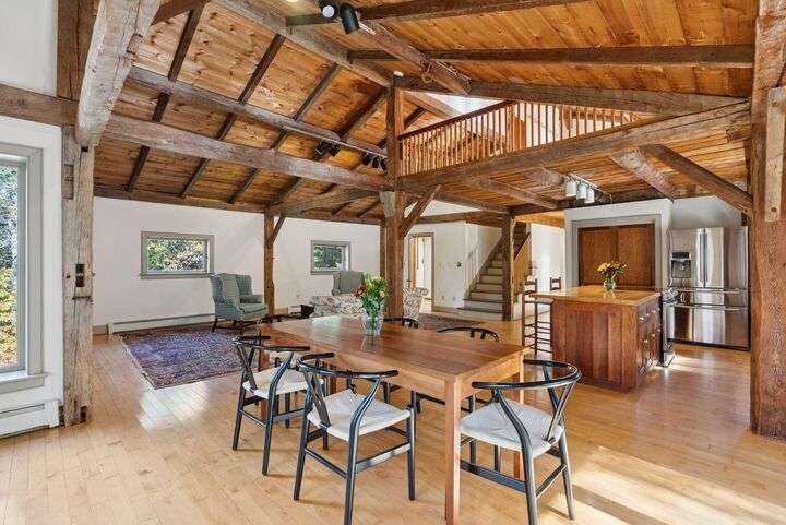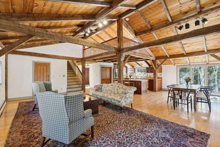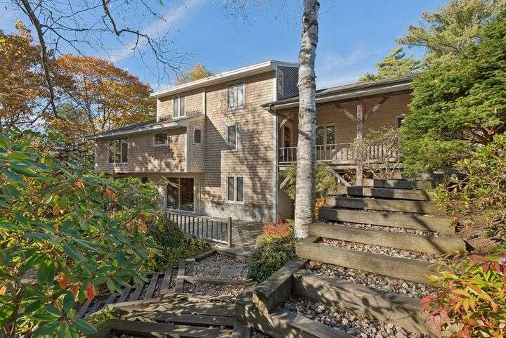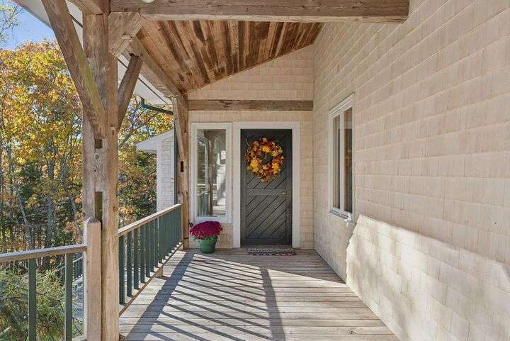 Available to the market for the first time! Nestled in the Cundy's Harbor community, this location offers privacy amidst tranquil tree-line. An enchanting contemporary craftsman style, utilizing reclaim hand hewn post and beams/construction- blending timeless charm and rustic elegance. Inside, cathedral ceilings and exposed timbers create an open, airy feel. Upon entering, kick off your shoes in the mudroom, make your way into the heart of the home- custom cherry cabinetry in the kitchen contrasts maple flooring, which flows seamlessly into the living space- equipped with butler's pantry/ wet bar, perfect for entertaining! Ample dining space, easily accommodates a full dining table fit for family and friends! 1st floor bedroom adorned with stately cherry built-in book cases and daybed. The lofted upper level can be versatile; full bathroom at the top of the stairs features a soaking tub and double vanity. This is a great space for den/ office/ media room- or primary bedroom, the choice is yours! The lower level yields 2 additional bedrooms, full bathroom, laundry room and family room with direct access to an expansive wooden deck overlooking your private side yard. Expertly terraced and landscaped with a plethora of plantings to create a woodland sanctuary! Attached 2-car garage is oversized, and could be further developed into finished space/ 1st floor primary suite. The basement is a large utility space, separately heated, with large double doors and 2nd driveway access off of Bayberry Ln- prime storage/ workshop space. The barn, Built in 2010 is spectacular- massive sliding doors lead to a voluminous space for vehicles or boat(s), or shop- additional storage in the upper loft. Standing seam metal roof extends on both sides to provide added covered storage. Whole house generator, gardeners shed, and new high efficiency Bosch boiler. Public boat ramp is a mile away, Little Ponds preserve for hiking, Quahog Bay Conservancy- Bethel Pt is an incredible community!