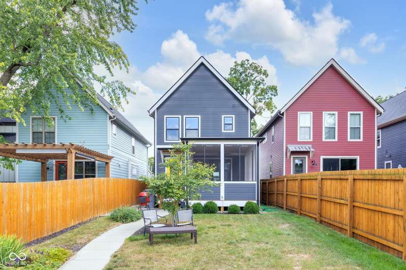 Welcome to your dream home in the heart of Bates Hendricks, where modern elegance meets urban convenience! This stunning transitional design residence, built by the esteemed Compendium Group, offers 4 spacious bedrooms and 3.5 luxurious baths, making it the perfect retreat for families or professionals seeking the best of both worlds. As you step inside, you are greeted by an inviting open floor plan with hardwood floors throughout that effortlessly blends contemporary aesthetics with functional living. The heart of the home features a gourmet kitchen, perfect for both everyday meals and entertaining, complete with custom cabinetry, stainless steel appliances, quartz counter tops, and walk in pantry. Enjoy fresh air as you step outside to the screened-in porch, an inviting space for morning coffee or evening gatherings, all while enjoying the serene outdoors without the pesky bugs. Functional mud room and stylish powder bath off of back door. Upstairs, the primary suite promises tranquility with its generous layout, vaulted ceilings, expansive windows and spa-like ensuite bathroom, offering a perfect place to unwind. Two additional well-appointed bedrooms, one with a fun loft space, provide ample space along with second full bath. Laundry room on 2nd floor. Basement includes large bonus room, 3rd full bathroom, and 4th bedroom. The two-car garage provides plenty of space for your vehicles and additional storage. Located along the South New Jersey Street esplanade, this home is just a short stroll away from local favorites like the charming ice cream shop, The Vault Kitchen and Bar, Lincoln Lane Coffee, and ARC Fitness. Embrace the vibrant lifestyle of this walkable neighborhood, with the energetic vibe of downtown Indianapolis just moments away.