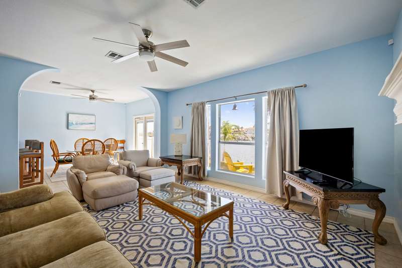 Prime location in Island Moorings! View of the Yacht Club and Marina, canal, boat lift, fast access to the bay or Gulf. Walk into the comfy open living / dining room with large windows and doors opening out to a spacious back porch and tranquil view of the water plus wood-burning fire place. Two bedrooms off the living room on the ground floor share a hallway shower-tub combo bathroom. Spacious kitchen with granite counter tops connects to the laundry room and access to the two-car garage. High ceiling stairway leads to the spacious primary bedroom upstairs. Unique configuration allows for two rooms connected with a breezeway, opening out onto a top floor deck for enjoying morning sun. Large primary bathroom includes shower and separate relaxing soaker tub, connecting to the expansive walk-in closet. Short-term rentals not permitted. Furnishings negotiable. Boat lift and wooden dock right off the back porch perfect for saltwater fun! Don't miss this one! - 11/3/2025 3:15:13 AM