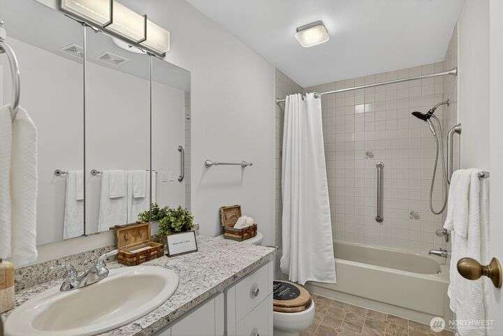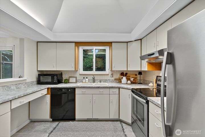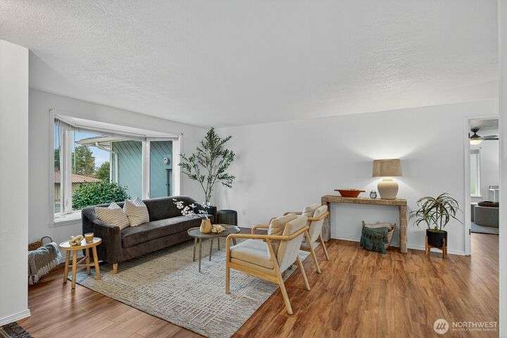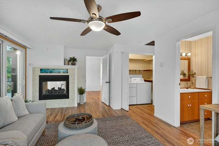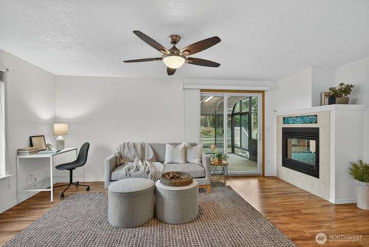 Welcome to effortless one-level living in the heart of Skyline with a layout that simply lives well. Living room flows into dining area, while well-appointed kitchen offers abundant cabinetry, pantry, generous skylight & pass-thru that makes hosting & everyday meals a breeze. A second living/rec room extends the home’s versatility, anchored by 2-sided fireplace & offering laundry, access to 2-car garage & slider opening to expansive sunroom. Outside is fenced backyard, ideal for garden lovers, pets or relaxed outdoor living. Three comfortable bedrooms include full bath & 3/4 bath, giving room for flexible use. Perfectly positioned to enjoy all amenities: play courts, beach club, nearby beaches & marina with quick access to Wa Park & ferry.
