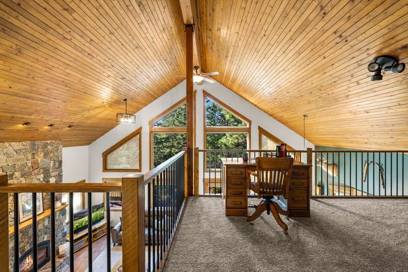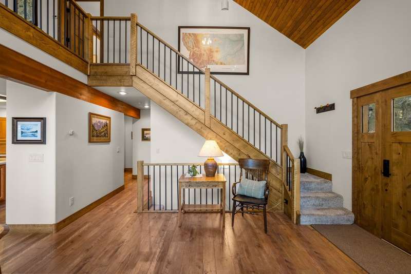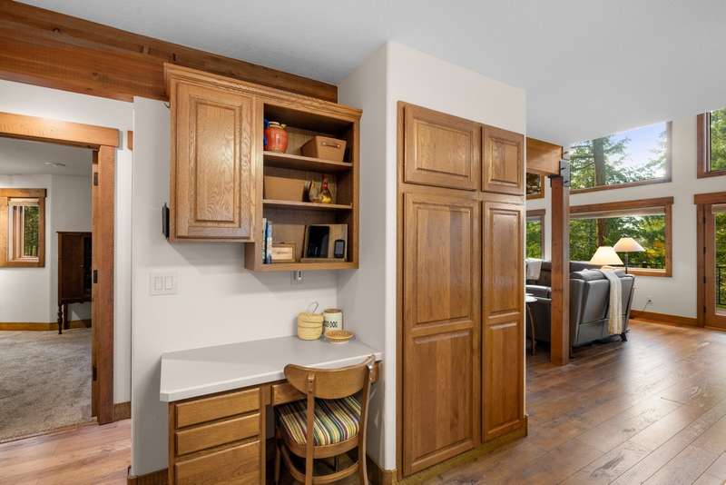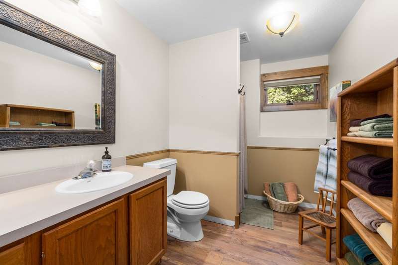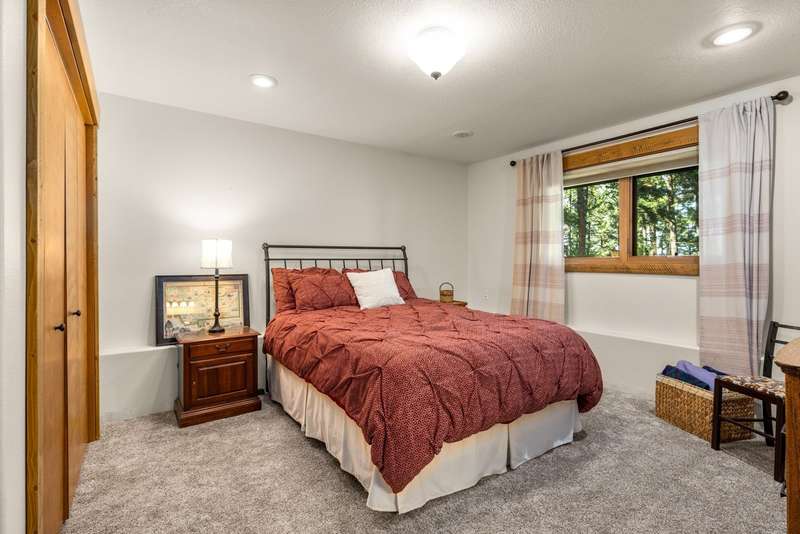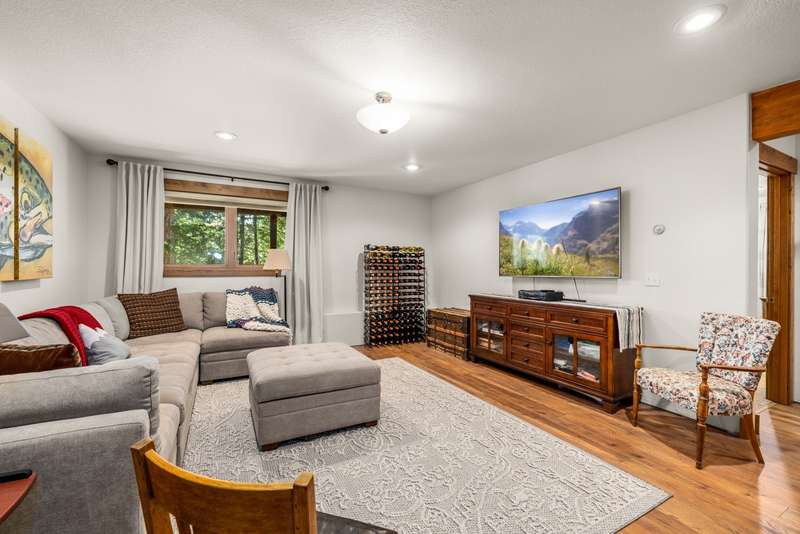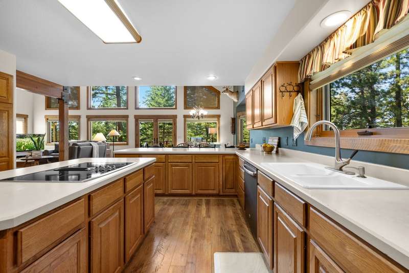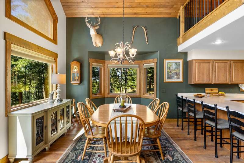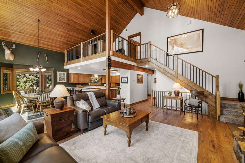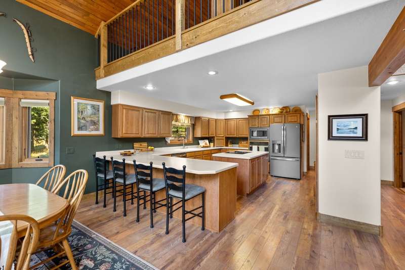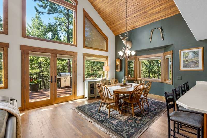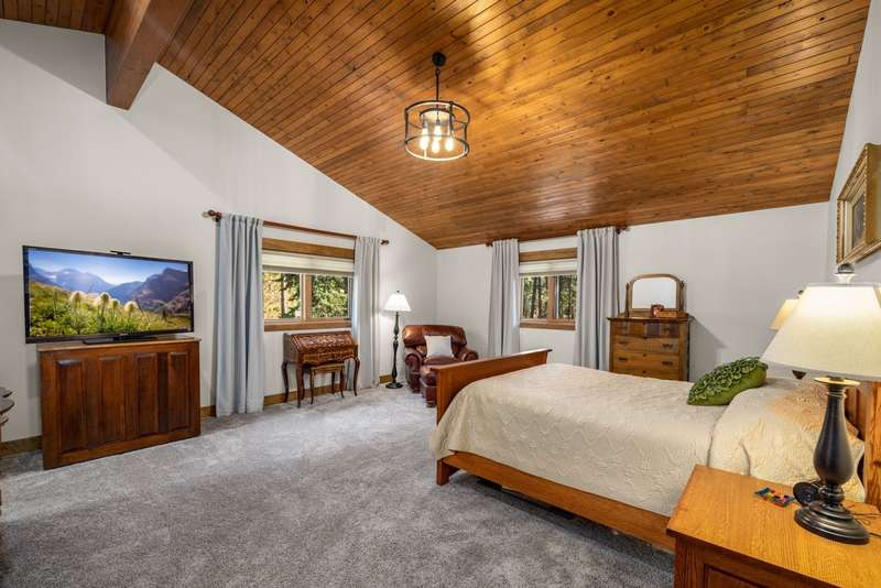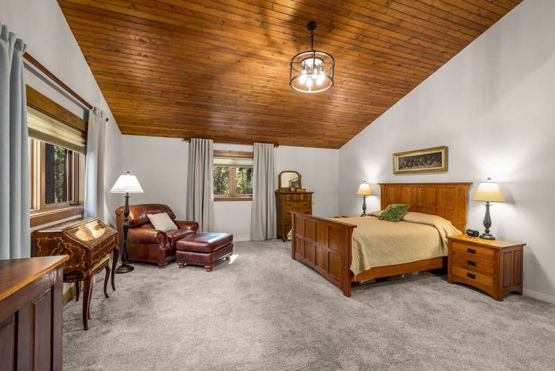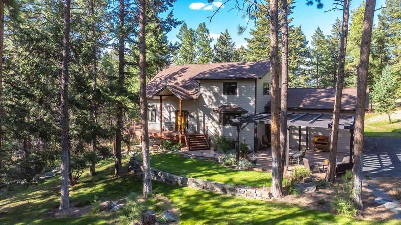 Set on a tranquil 6-acre wooded lot, this home offers the perfect blend of privacy and comfort. The inviting open layout features soaring vaulted ceilings and a spacious primary bedroom with a beautifully remodeled bathroom and a gear/hobby/exercise room. Meticulously maintained, the home includes a 4-year-old boiler system, a new deck, new roof, fresh paint, and updated windows and doors, private well, sprinkler system all enhanced by elegant stamped concrete accents. For added versatility, a 24 x 32 heated shop features a cozy 400-square-foot living area with a kitchen and bathroom-ideal for guests or a home office. Heated and insulated garden shed. Enjoy easy access to Lone Pine, Heron, and Foys Lake, along with nearby bridle paths and a tennis court, making this property a perfect retreat for relaxation and outdoor activities.
