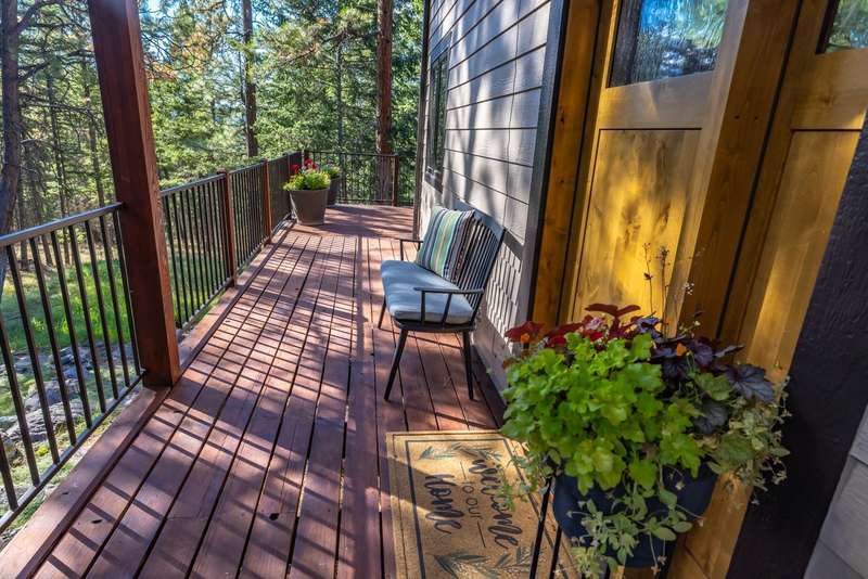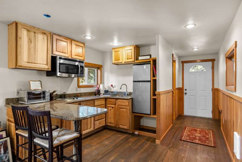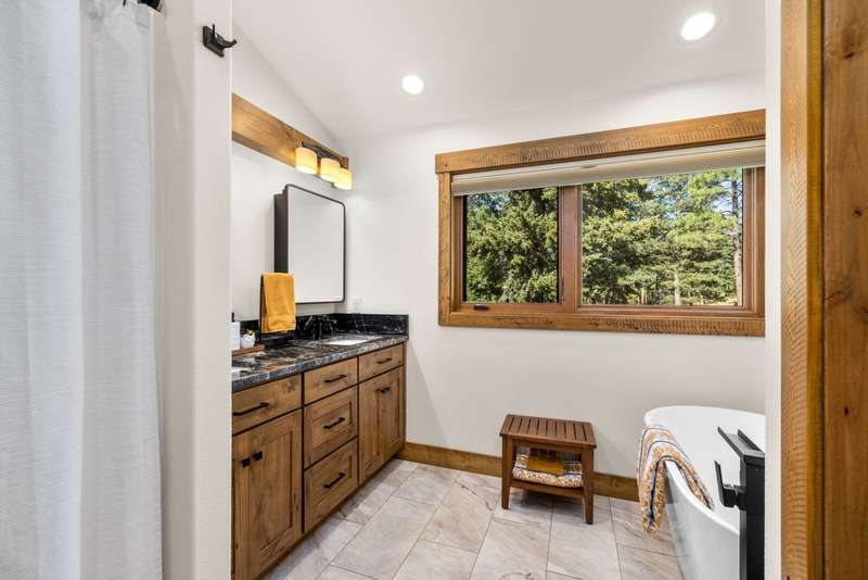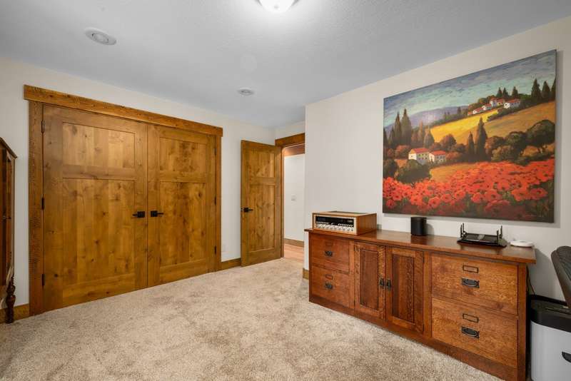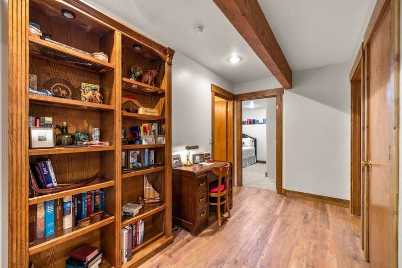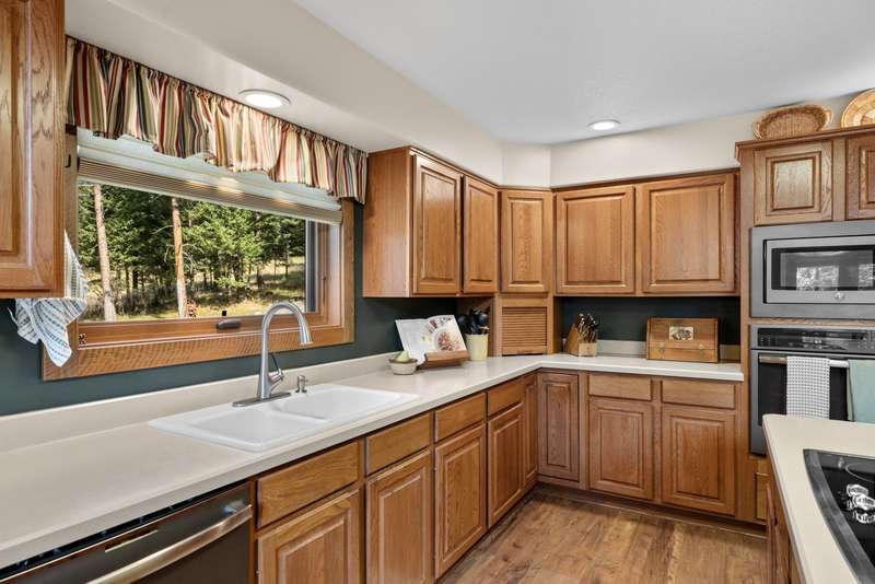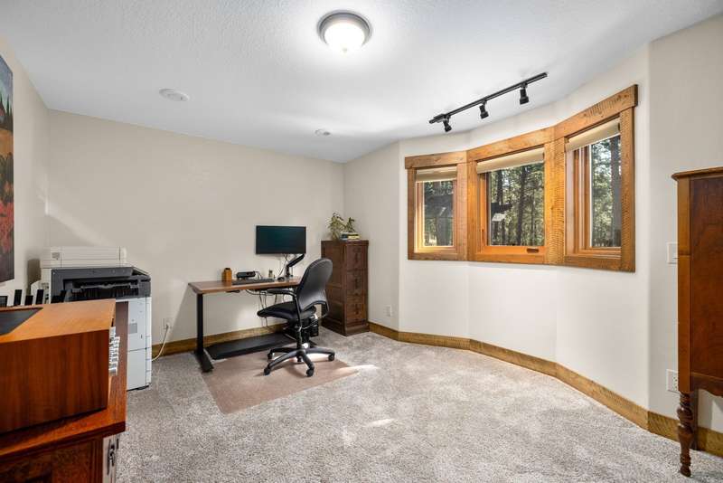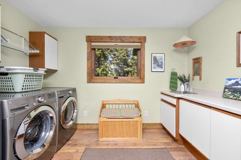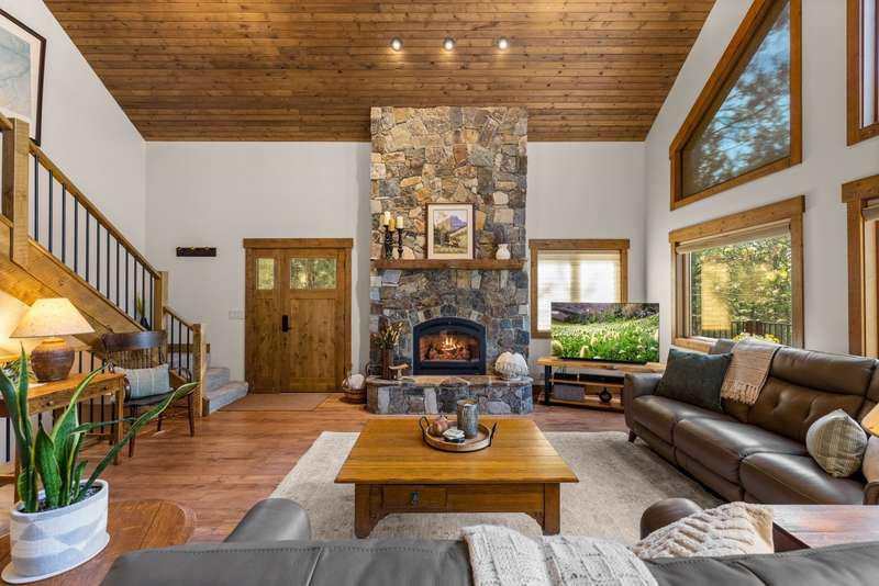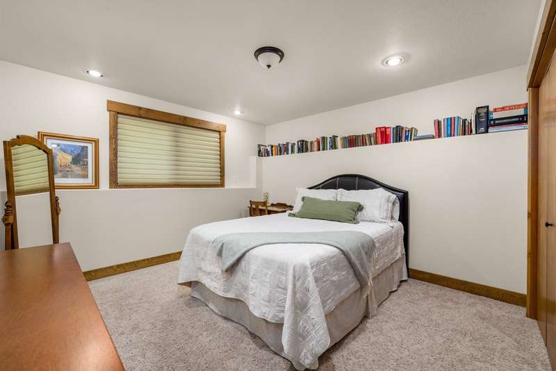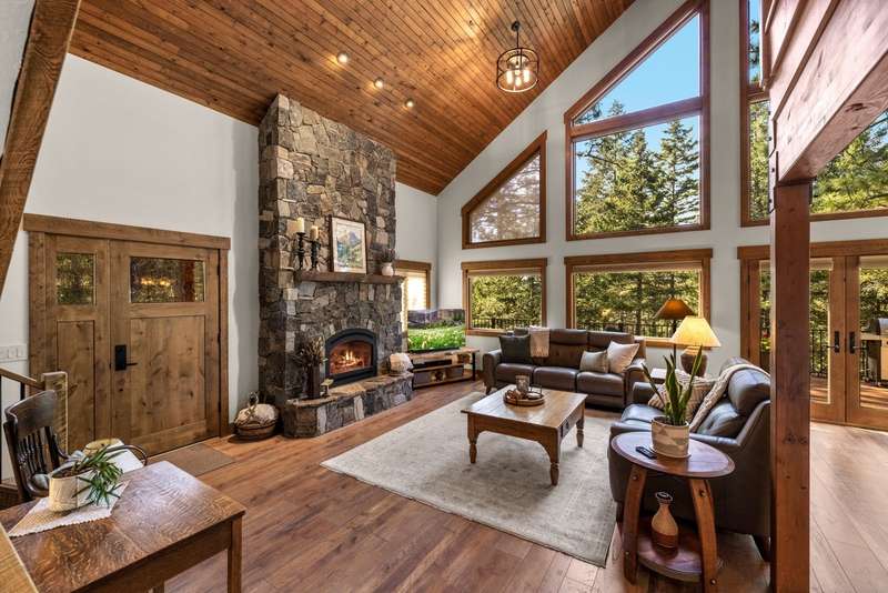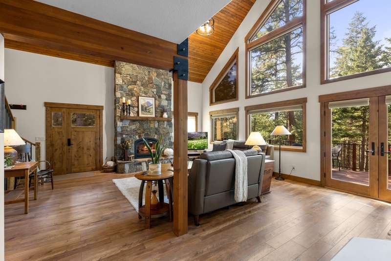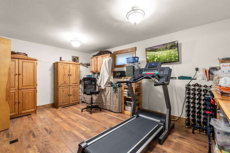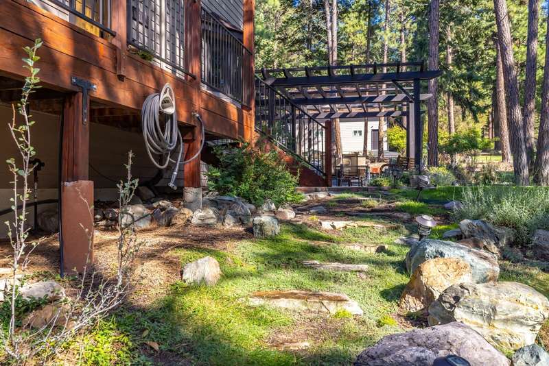 Set on a tranquil 6-acre wooded lot, this home offers the perfect blend of privacy and comfort. The inviting open layout features soaring vaulted ceilings and a spacious primary bedroom with a beautifully remodeled bathroom and a gear/hobby/exercise room. Meticulously maintained, the home includes a 4-year-old boiler system, a new deck, new roof, fresh paint, and updated windows and doors, private well, sprinkler system all enhanced by elegant stamped concrete accents. For added versatility, a 24 x 32 heated shop features a cozy 400-square-foot living area with a kitchen and bathroom-ideal for guests or a home office. Heated and insulated garden shed. Enjoy easy access to Lone Pine, Heron, and Foys Lake, along with nearby bridle paths and a tennis court, making this property a perfect retreat for relaxation and outdoor activities.