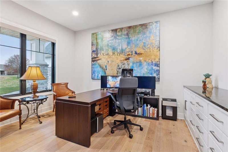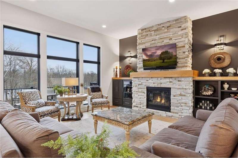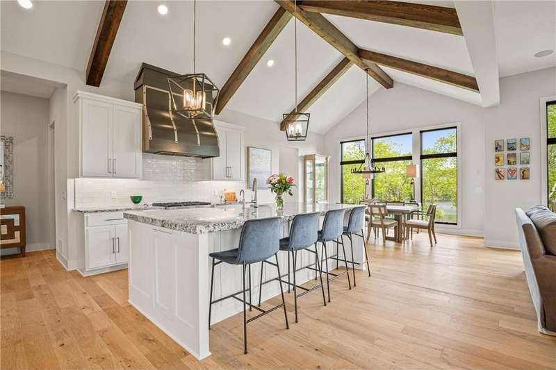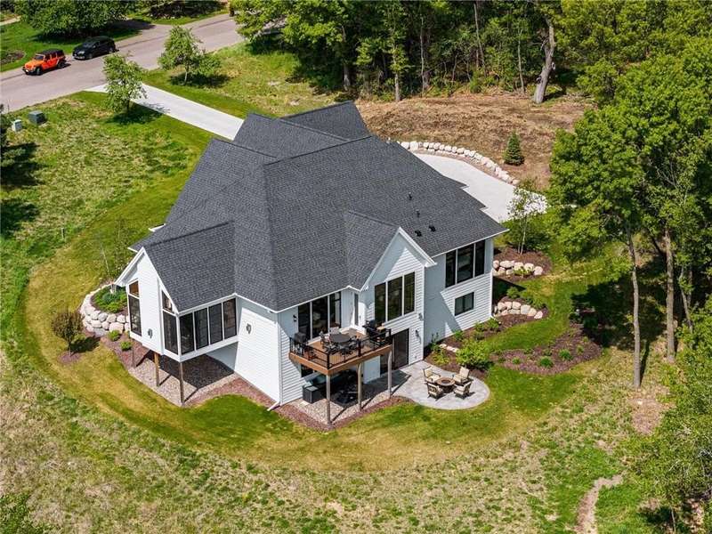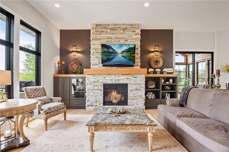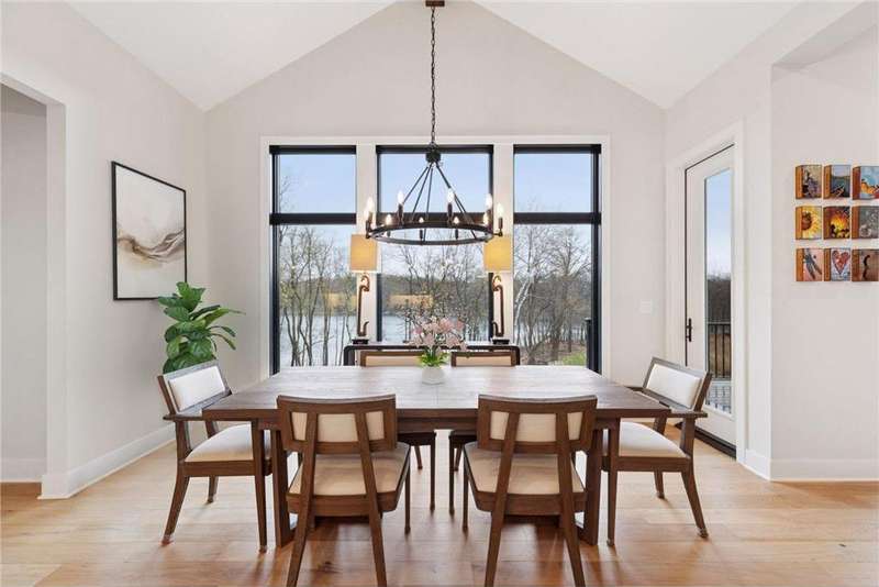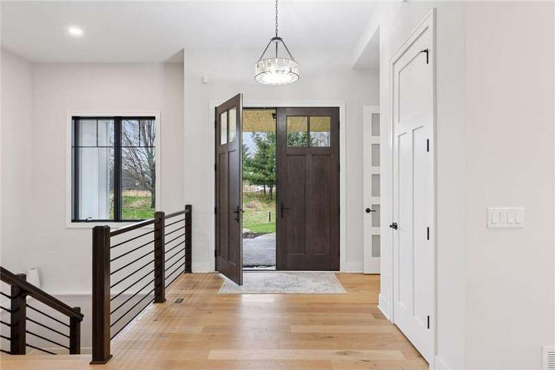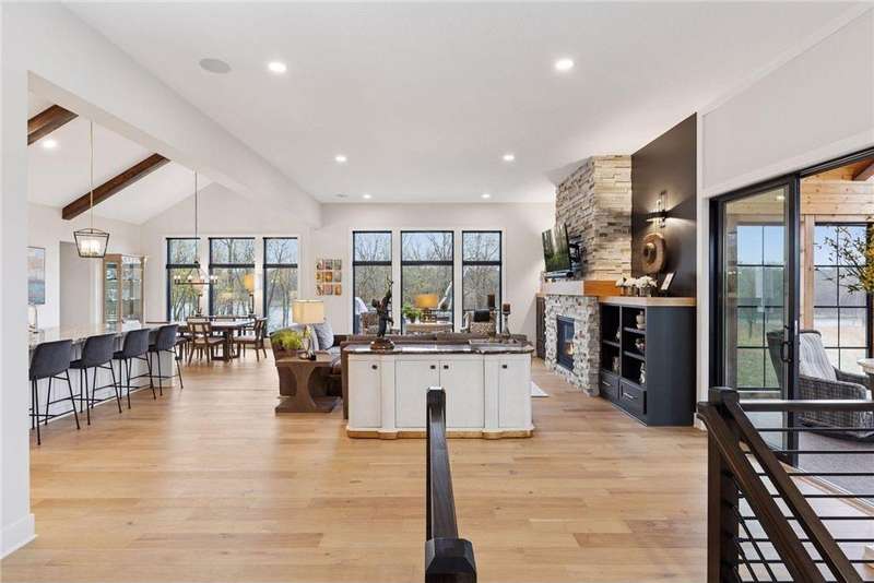 Discover refined elegance and effortless lakeside living in this stunning walkout rambler, custom-built by the renowned TJB Homes. Nestled on the serene shores of Lake McDonald, this home blends timeless craftsmanship with modern comfort—offering a rare opportunity to own a nearly new lakefront retreat in Cloverdale Farm. Soaring ceilings, expansive black Andersen windows frame breathtaking water views, and a seamless open-concept layout designed for both entertaining and everyday living. Main level living, Wirsbo In floor heat, Custom remote control window treatments, Sonos surround sound, and room to add a dock on the lake.