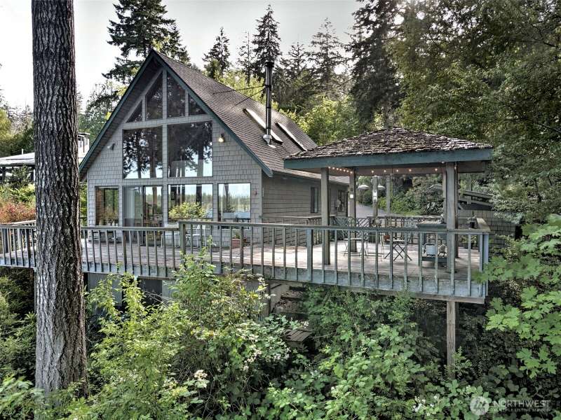 Grapeview Beach House! South Puget Sound setting with Mt Rainier, Harstine Island, & Pickering Passage view. Perfect place for boating on calm inland waters. Nearly an acre with +/- 100 feet of private pebble beach plus tidelands. Open living & large windows for plenty of light & marine vista. Two bedrooms on main plus vaulted ceiling, open loft with another sleeping area. Beautiful natural landscape, garden area & greenhouse. Gazebo on deck for outdoor dining. Lower level large storage space. Detached carport. Stairs lead to another deck just above the water, with beach toy storage & room for entertaining or just enjoying the peace. An exceptional beach invites you to take a dip or launch that paddle board. The true PNW lifestyle awaits!