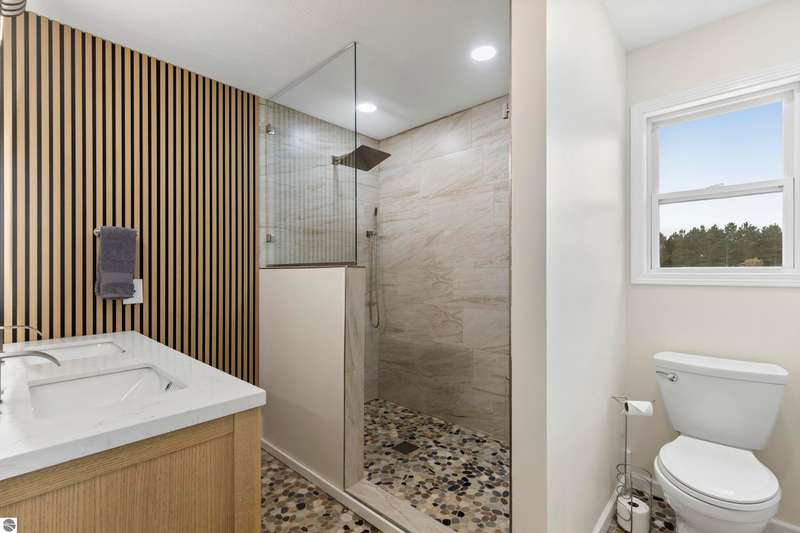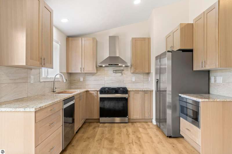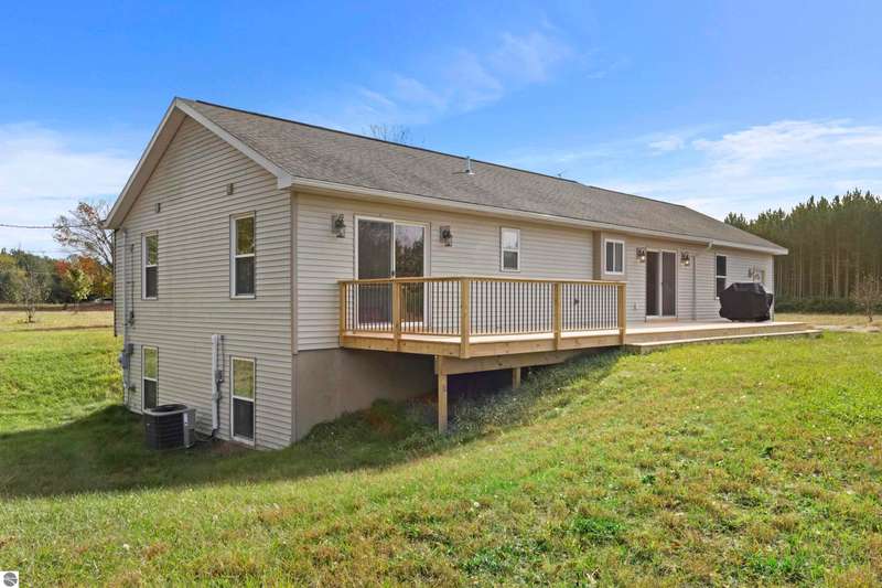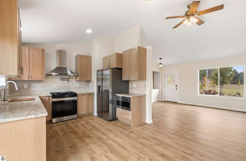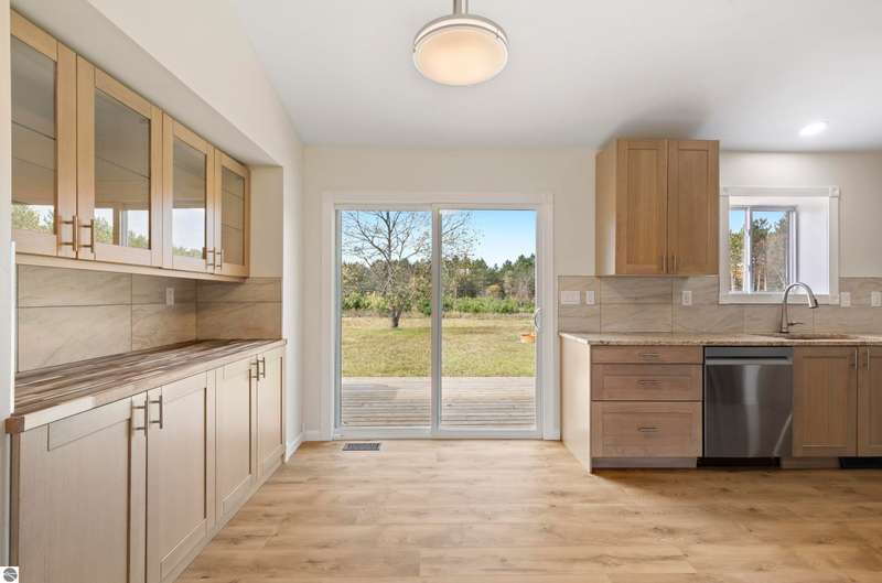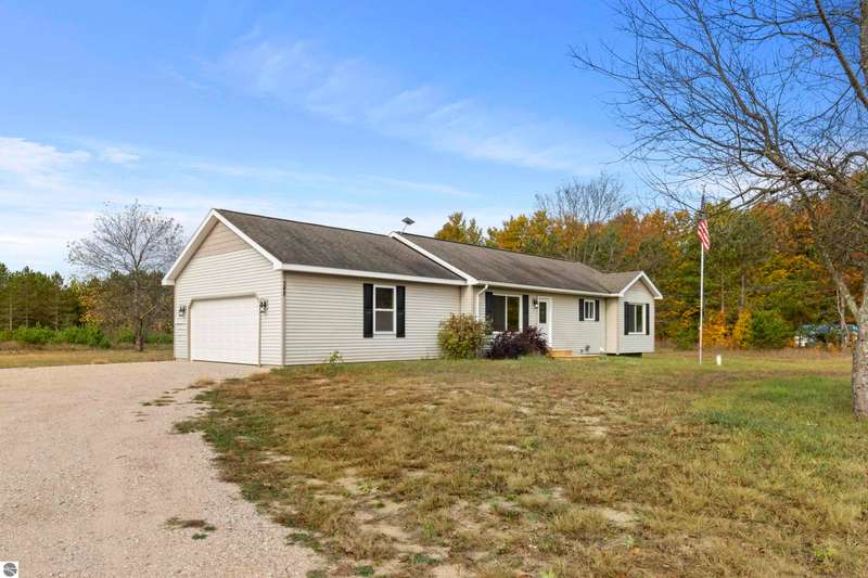 Set on almost 5 peaceful acres surrounded by northern Michigan's natural beauty, this beautifully renewed 4-bedroom, 3-bath ranch offers the perfect blend of modern comfort and country living. Just a short drive to Traverse City, Beulah, Frankfort, Lake Michigan, and local favorites like St. Ambrose Cellars, this home feels both private and connected to everything you love about the area. Inside, every detail has been thoughtfully updated -- new flooring, windows, doors, plumbing, heating and cooling, and electrical fixtures -- giving the home a fresh, welcoming feel. The kitchen features new granite countertops, cabinetry, and stainless-steel appliances, along with modern touches like a drawer microwave and a pot filler above the stove for extra convenience. The open layout flows easily into the bright living area, perfect for everyday life and gathering with friends. The completely finished lower level adds even more room to spread out, with a large family room, updated bedrooms, and a modern full bath -- perfect for guests, a home office, or cozy movie nights. Outside, the 5-acre setting provides endless opportunities for gardens, play, or simply relaxing on the new patio in the quiet of the countryside. Move right in and enjoy a home that feels brand new -- surrounded by the best of northern Michigan.