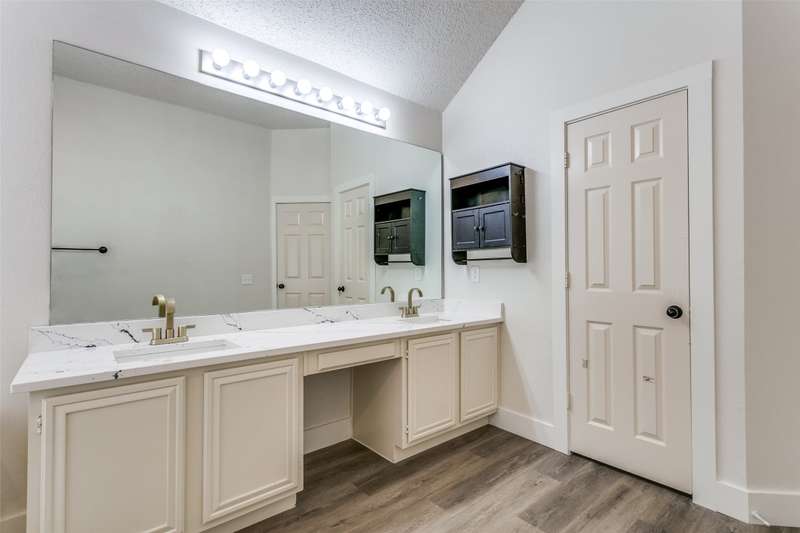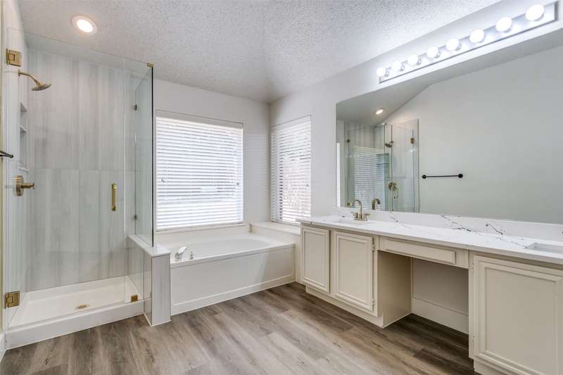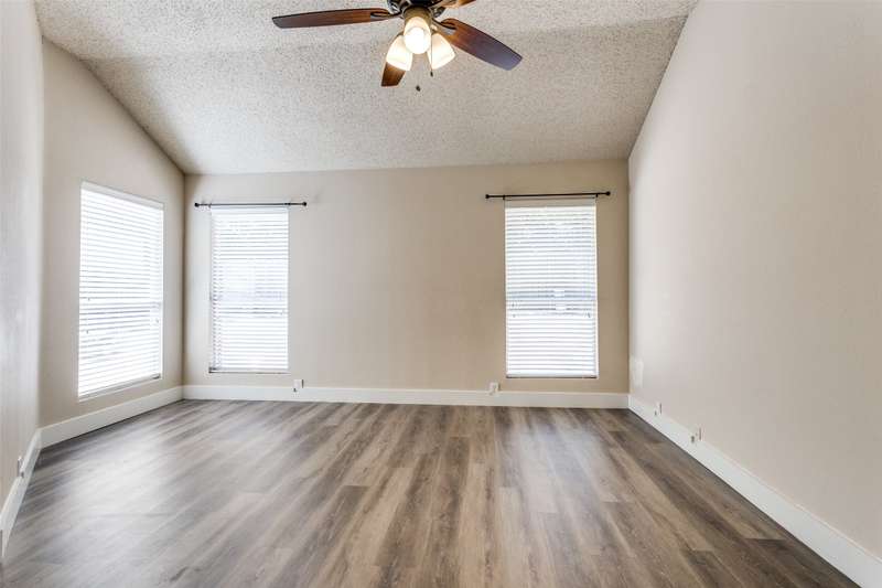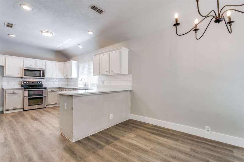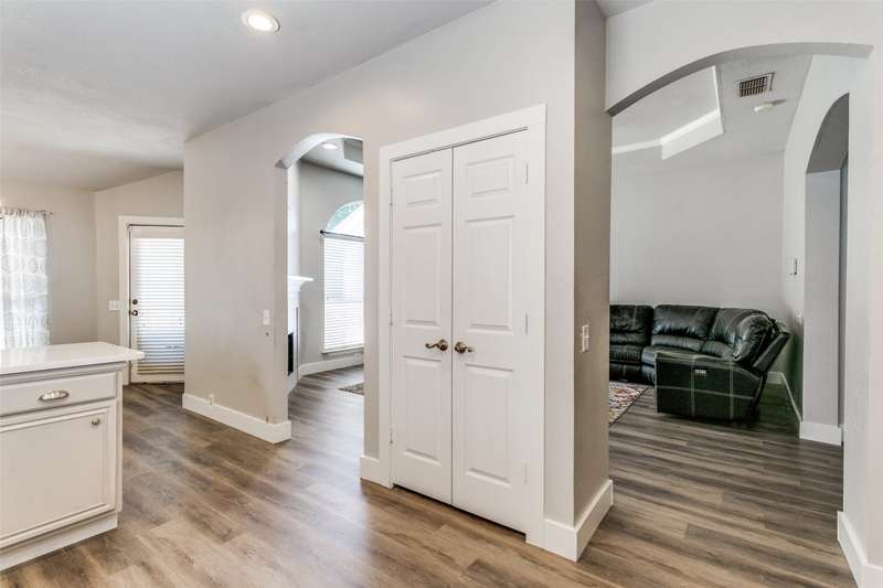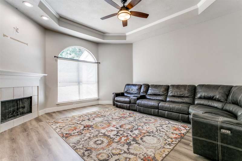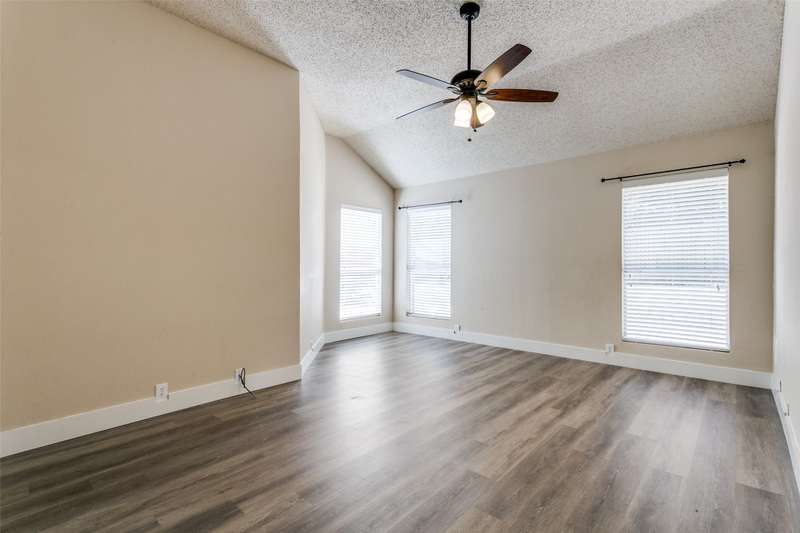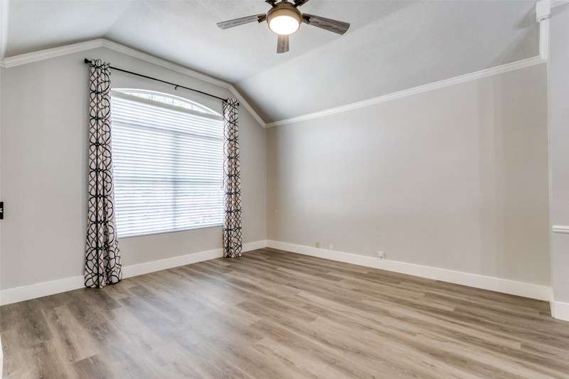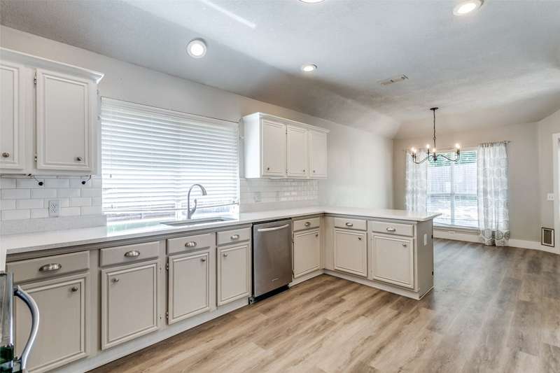 WELCOME HOME! You're going to fall in love with this well cared for home that's nestled in a great neighborhood and backs up to a private Greenbelt. This gem is conveniently located close to TWO amazing Parks and close to the highly desirable Green Valley Elementary. From the moment that you walk in, you're greeted with a light and bright open feel with a flexible floorplan. Features include high ceilings, crown molding, chair rail molding in formal dining, tall baseboards throughout, ceiling fans, and 2 inch blinds. Beautiful recent updates and improvements that were completed in the past few years starting in 2018; Professionally painted kitchen cabinets, Quartz countertops added in kitchen, Subway tile backsplash, Interior paint, popcorn ceilings removed throughout except in bedrooms, tile accent wall added in laundry room. 2024 Gas water heater replaced, 2025 Flooring replaced throughout to wood look laminate, All the baseboards, Both bathrooms plus the hallway painted, Primary bath cabinets painted, shower remodeled, added Quartz countertops, primary bath faucets, and the hallway bathroom completely remodeled with quartz countertops, walk in shower, paint, hardware, faucets, mirrors, lighting, plus the Microwave and kitchen disposal!! Wood Fascia was professionally replaced on the back of house and chimney, and all of exterior was painted May 30th, 2025. Other quality and desirable features include stainless steel appliances, double oven, both gas and electric stub in laundry room, large walk-in primary closet, double sinks, garden tub, and so much more! Spacious rooms, and the 4th bedroom would make a perfect study, nursey, or multipurpose flex space. Set up your entertaining retreat or play area on the Huge 39X20 back patio! A must see home!