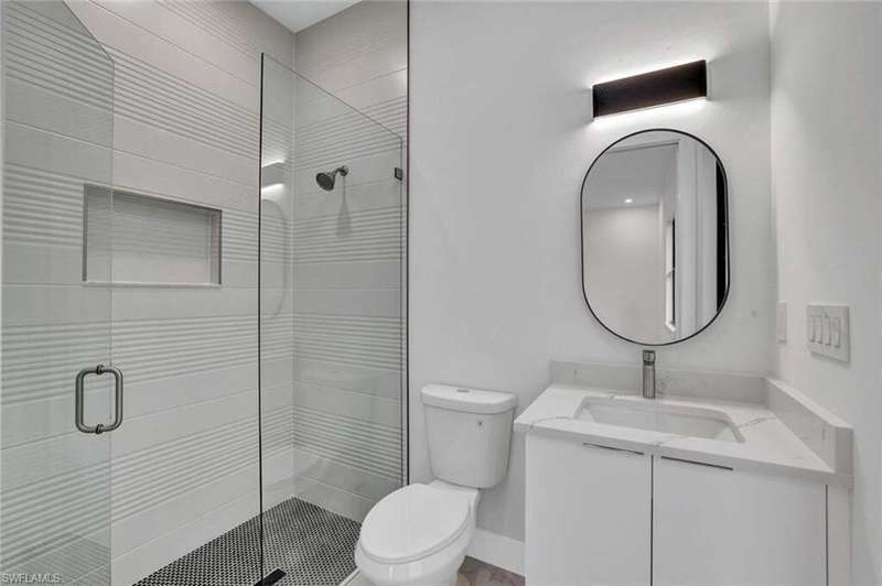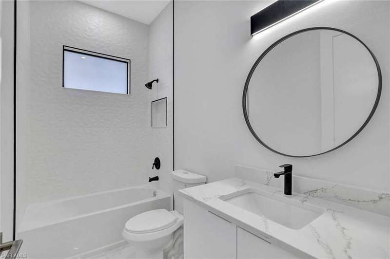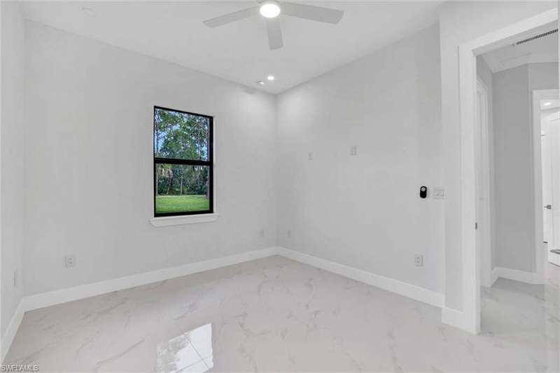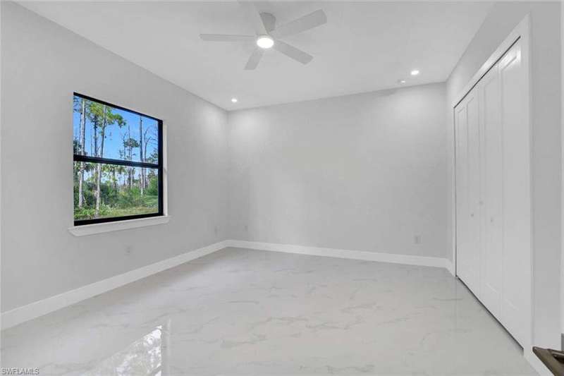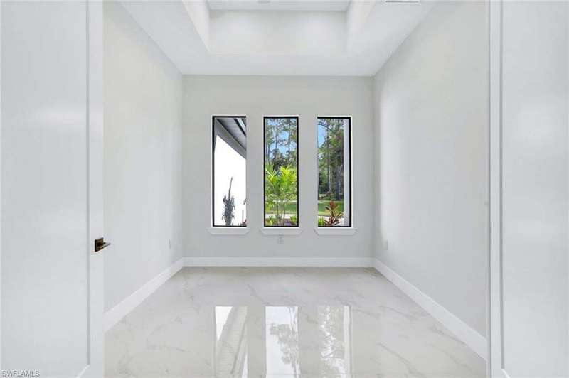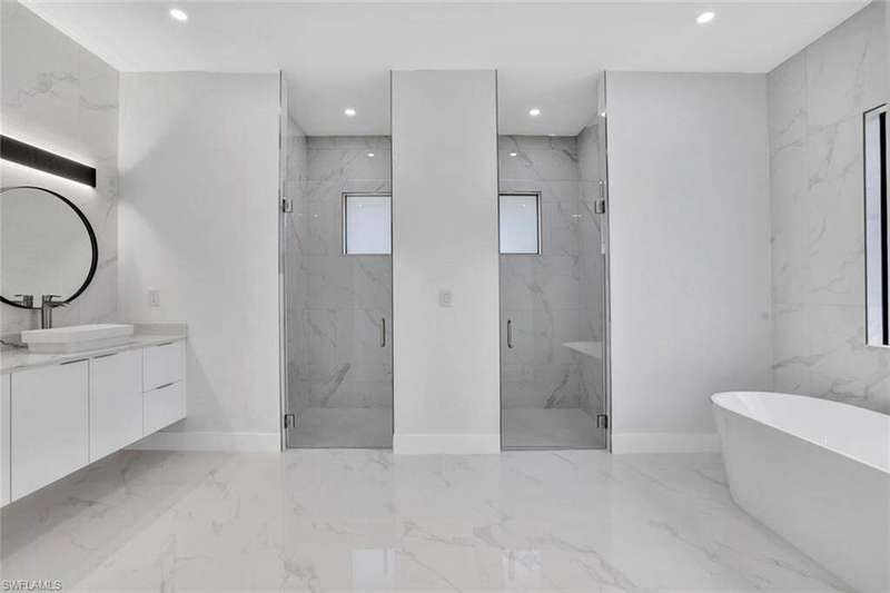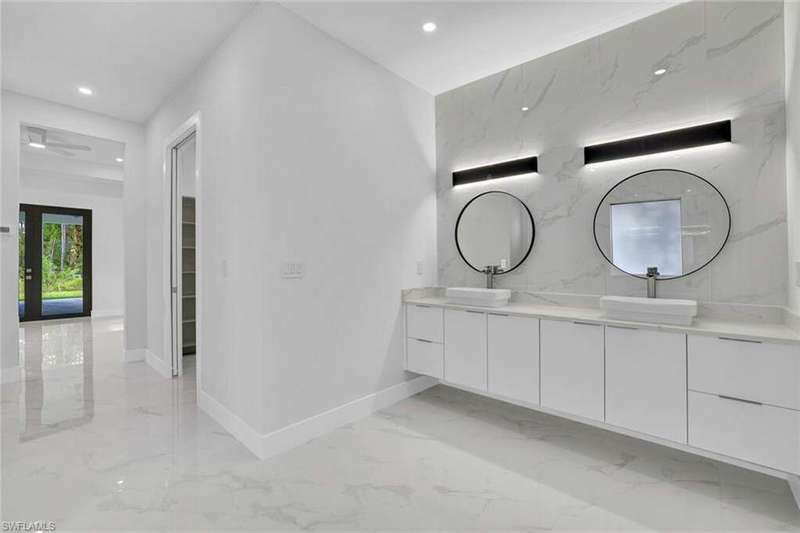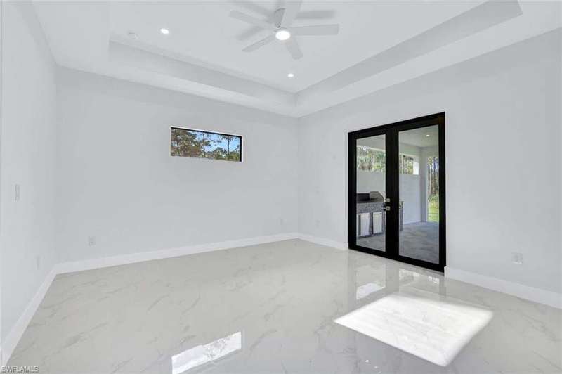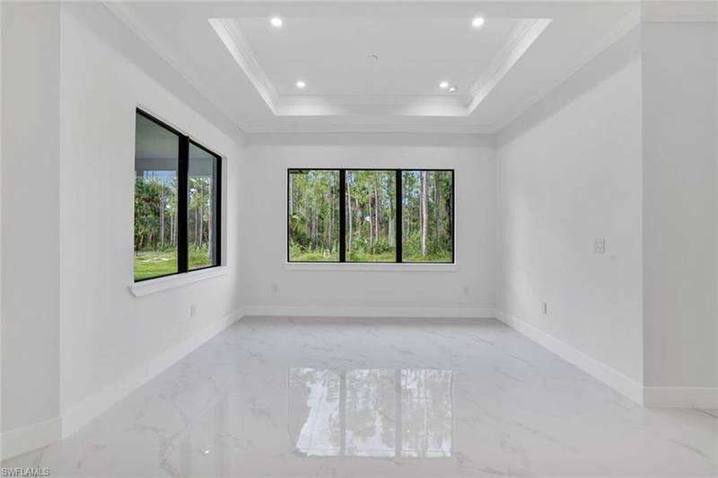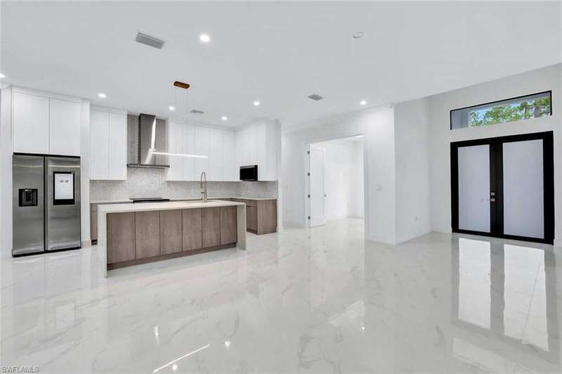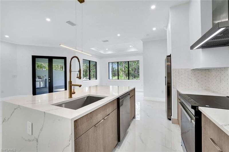 This property is 100% uplands and sits in an exceptionally prime location just off Wilson Boulevard. Surrounded by other beautiful homes, it offers the perfect setting to build your dream residence in one of the most desirable areas of Golden Gate Estates. Inside, the home showcases a stunning modern kitchen with sleek white upper cabinets and warm wood-tone lowers, creating a sophisticated two-tone design. Expansive quartz countertops with waterfall edges and a full-height designer backsplash add a touch of luxury, while the oversized island with a contemporary gold pull-down faucet blends style and function. High-end stainless steel appliances, recessed lighting, and a minimalist pendant fixture complete this bright, open space-perfect for everyday living and entertaining. The master bathroom is equally impressive, featuring floor-to-ceiling tile, a luxurious free-standing tub, and dual showers, creating a spa-like retreat within your own home. The home also boasts a huge outdoor lanai with a fully equipped outdoor kitchen, ideal for gatherings and enjoying the Florida lifestyle year-round. A thoughtfully designed residence that balances modern elegance with timeless comfort in an exceptional location.