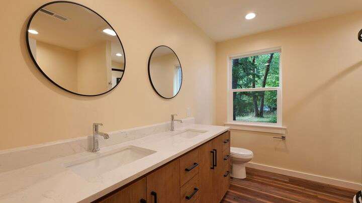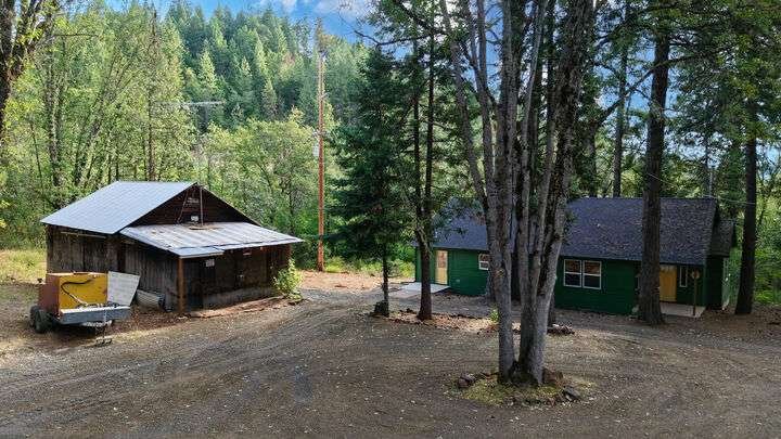 Extensively remodeled in a peaceful forest setting! This quality-built 3-bedroom, 2.5-bath home offers 1,615 sq. ft. of higher-end finishes throughout, including SmartCore waterproof laminate flooring, Hardy Plank siding, a heat pump, and an energy-efficient Stiebel Eltron water heater. The spacious primary suite features a private office, perfect for working from home. Relax and enjoy the surroundings from your covered deck, nestled on 2.53 acres across two tax lots, zoned RR5. A good producing well and Nye Ditch irrigation rights add to the property's value. Plus, there's an oversized 18x36 garage/shop, offering plenty of room for storage, hobbies, or parking. A great combination of modern comfort and country living! Just minutes from endless outdoor adventures—Rogue River, Lost Creek Lake, Union Creek Resort, Crater Lake National Park and Diamond Lake!