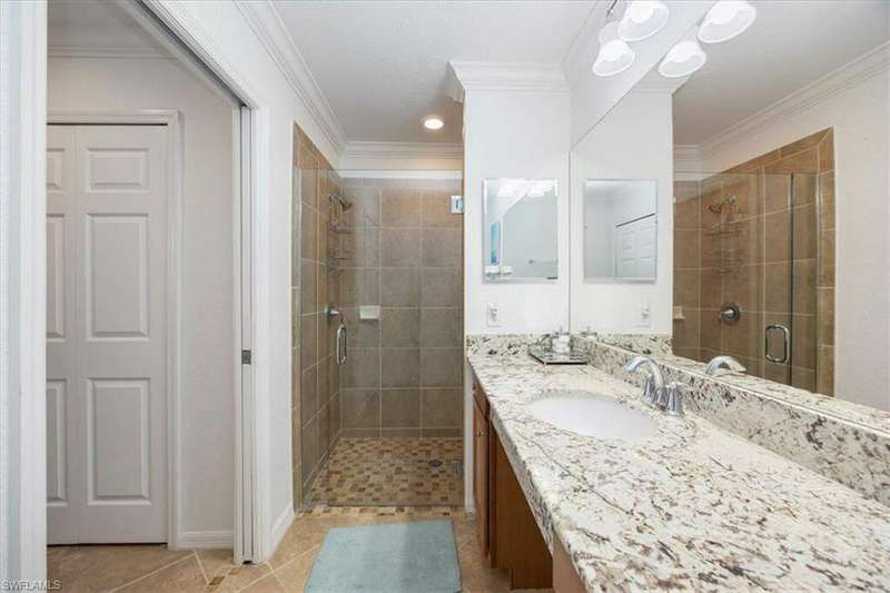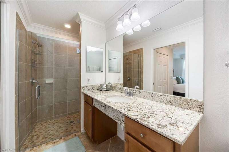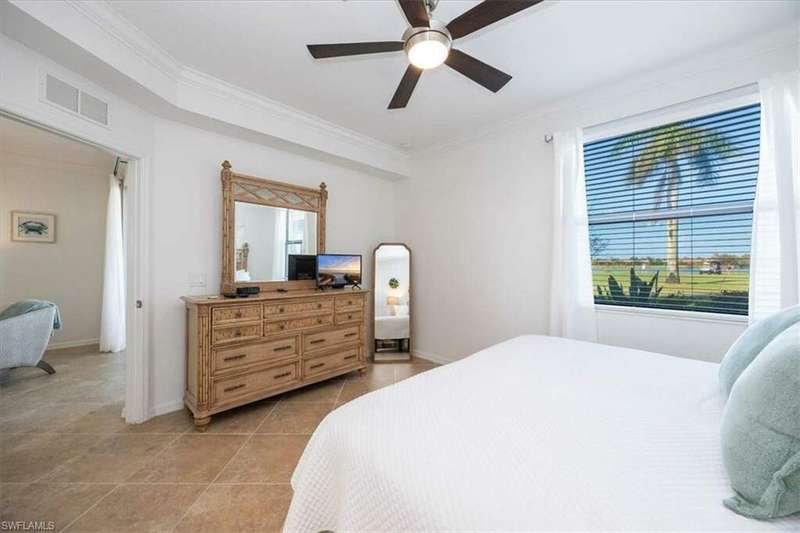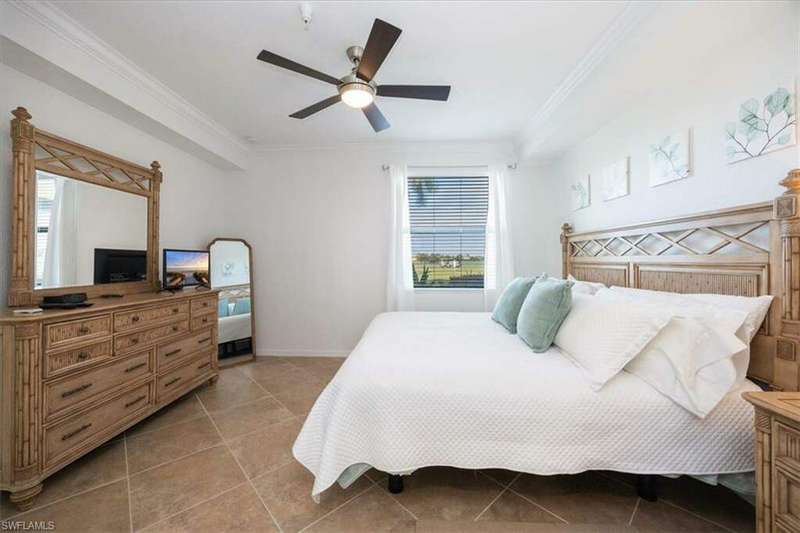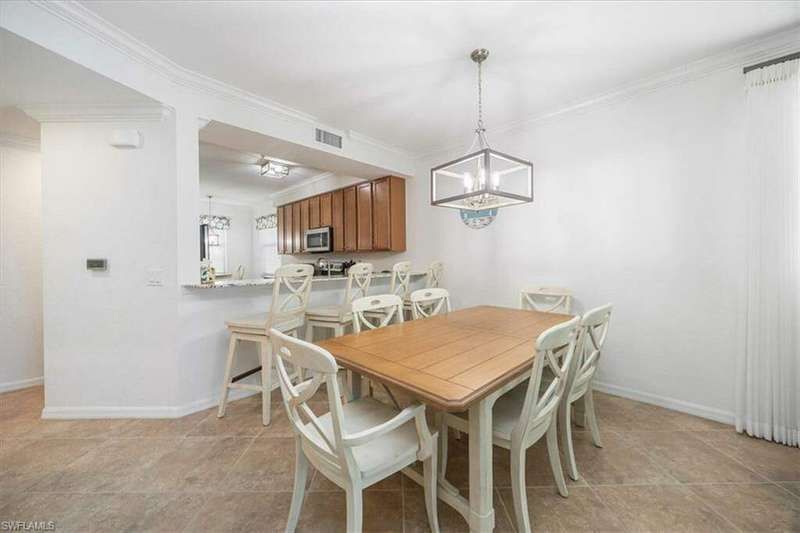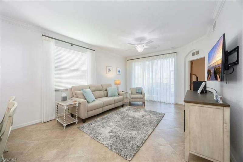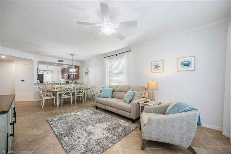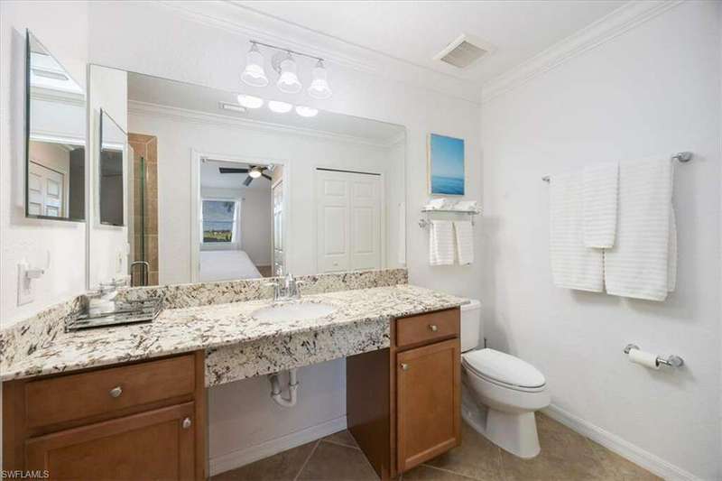 GOLF MEMBERSHIP - 1st Floor 2 bedroom plus Den, 2 Bathroom Condo. Golf Course and Lake Views. This turnkey furnished end unit condo is light and bright inside all day. New countertops, stainless appliances, thoughtfully decorated for comfort and relaxation. Bonita National's outstanding amenities include resort style pool, exercise studio, full service spa, tennis courts and more!! The Bonita National Golf course was designed by Gordon G. Lewis and boasts an aqua driving range and golf pro-shop. Enjoy dining at the full service bar & grille or formal dining room. Close to beaches, shopping and dining.