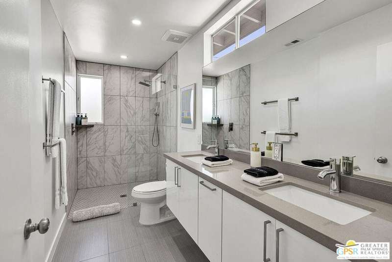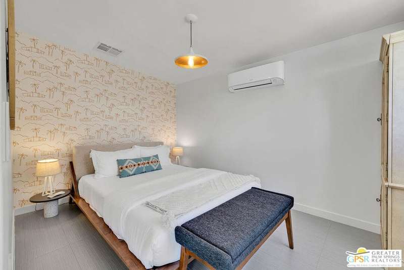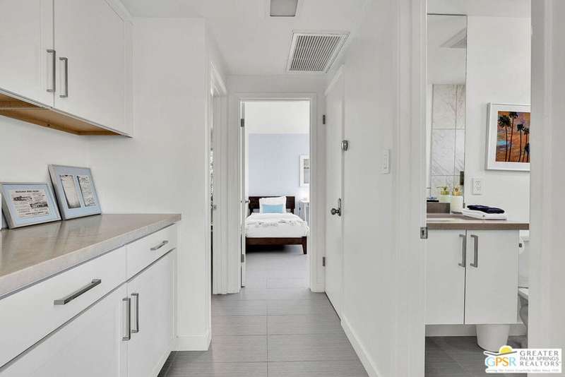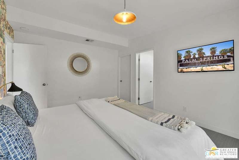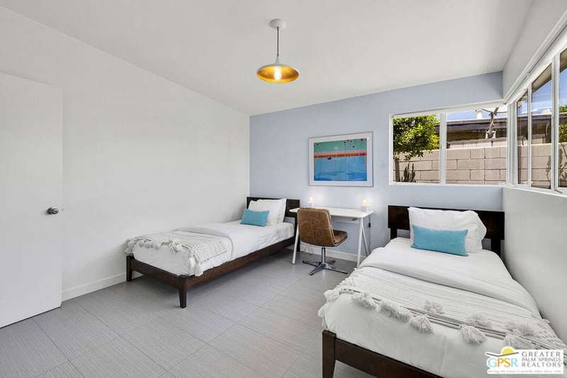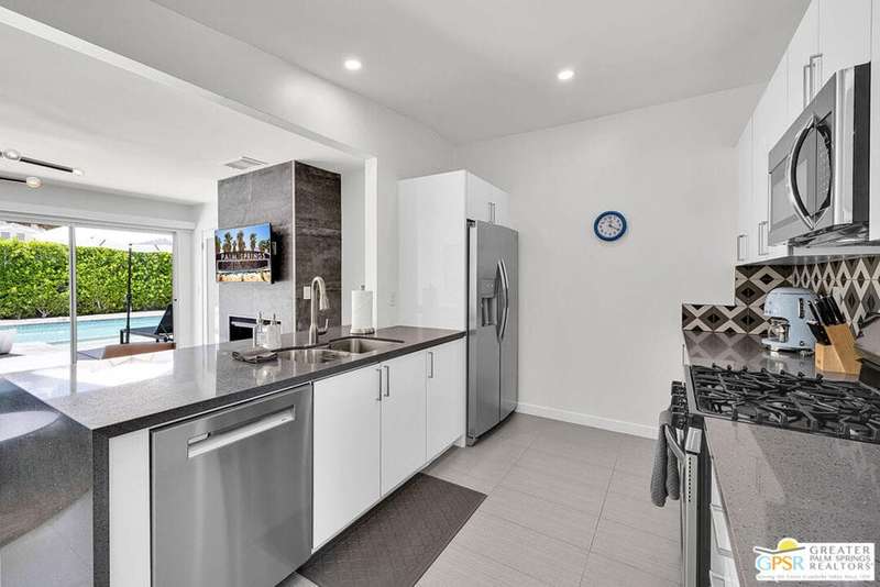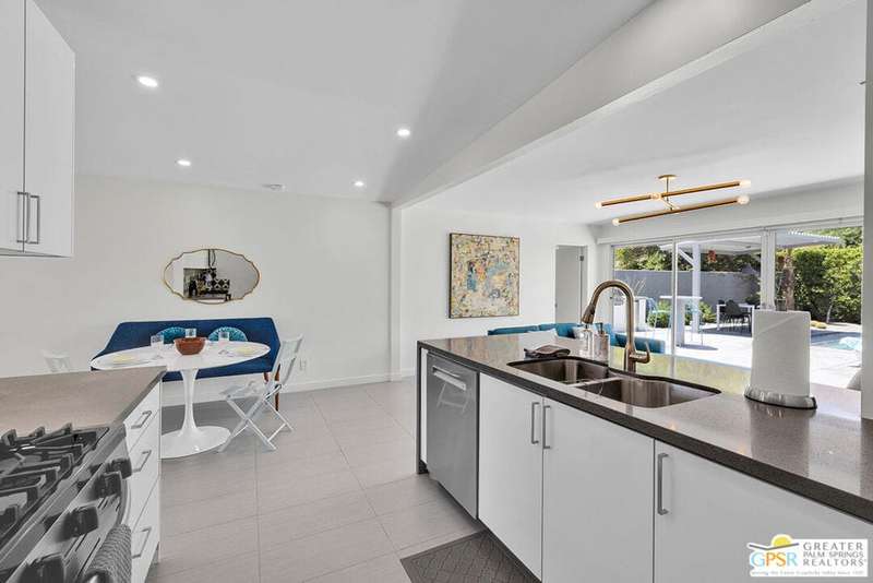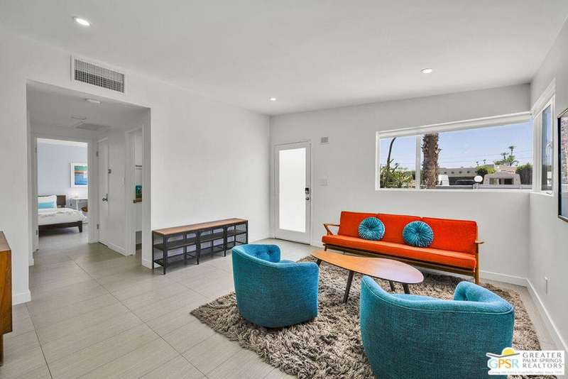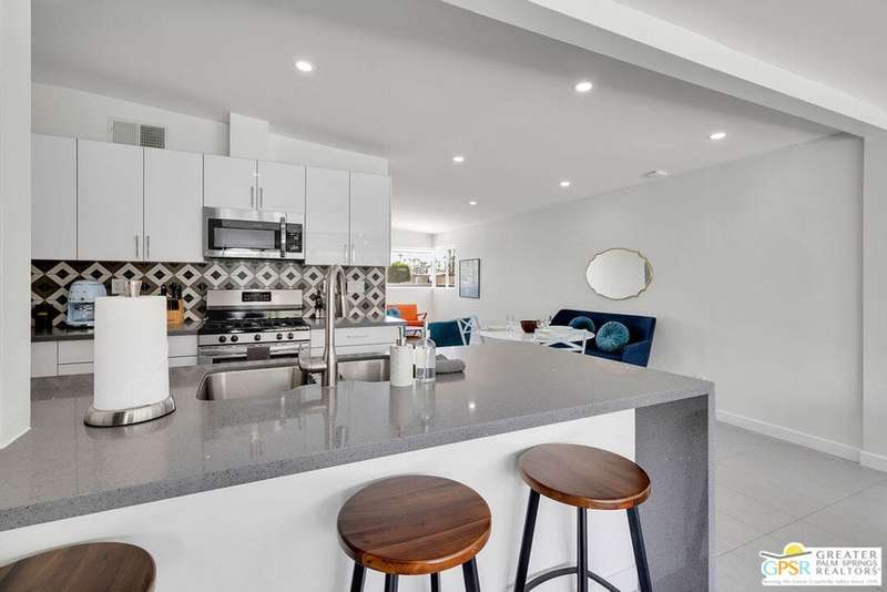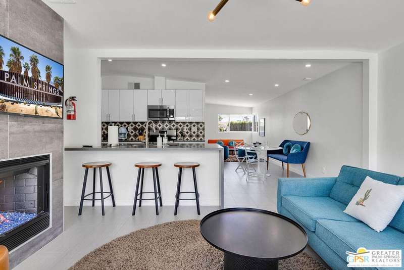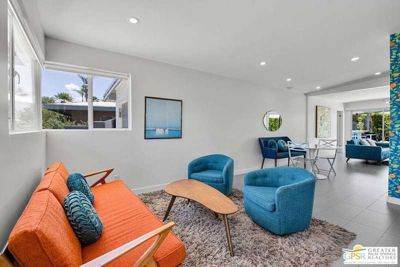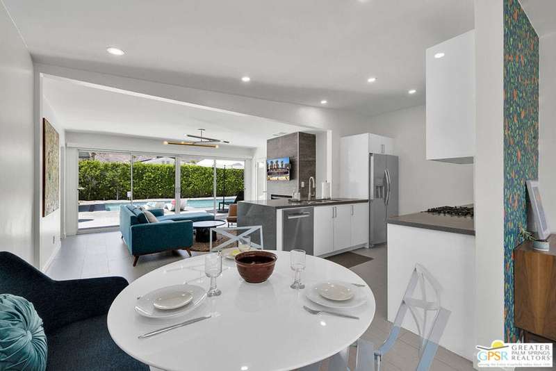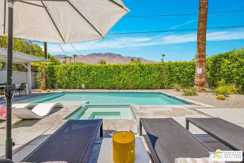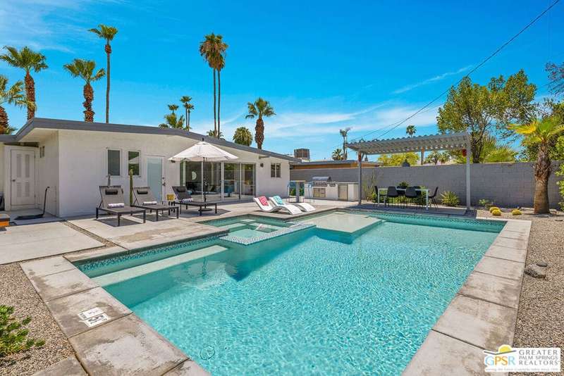 Discover this beautifully updated 1954 Meiselman-built mid-century home, perfectly situated in the heart of Movie Colony East in Palm Springs. This stylish retreat features two spacious bedrooms, two full bathrooms, and a versatile den that can easily serve as a third bedroom, home office, art studio, or gym. Recently renovated, the home has a sleek open-concept kitchen, modern bathrooms, and generously sized bedrooms. The kitchen is a chef's dream, offering panoramic views through a wall of glass that overlooks the sparkling pool and the serene mountain backdrop. Step outside and enjoy the ultimate desert lifestyle with a refreshing swim in the recently added pool, a soak in the spa, or a barbecue followed by alfresco dining beneath the built-in shade structure. As the sun sets, gather around the cozy fire pit for relaxing evenings and great conversation. The fully gated property includes a one-car garage, ample off-street parking, and a fully owned solar system with a Tesla battery helping you save on energy costs year-round. Last but not least, this home is offered turnkey furnished. Interested in rental income? Check with the City of Palm Springs about obtaining a Junior Rental Permit. Contact the agent today for a private showing of this iconic Palm Springs home!