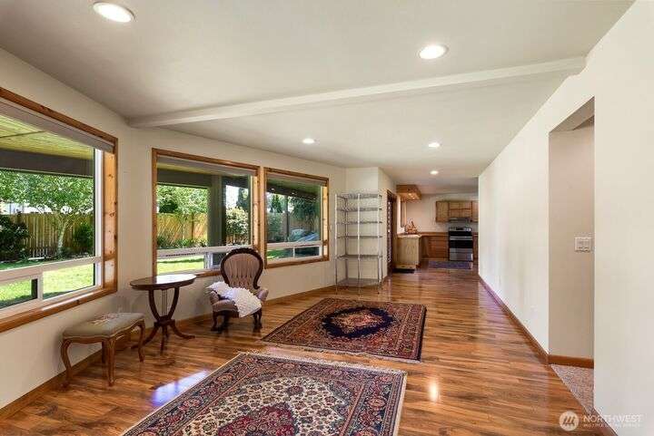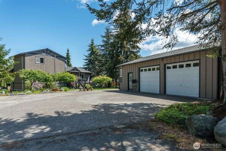 Hidden Gem on nearly half an acre. Tucked away on a dividable lot, this 3,500 sq ft home offers rare flexibility—Private retreat with beautiful backyard and deck, home is also perfect for multi-generational living. A large shop sits up front, while the main home is set back for added privacy. Inside, enjoy soaring ceilings, natural wood and stone slab counters, pine cabinetry, and durable Saltillo-look flooring. Two kitchens, two living areas, two laundries, and generous storage make this home incredibly versatile. The loft-style primary suite features a spa-like shower, and comfort is ensured with radiant heat floors, natural gas, and A/C. The level yard is rich with mature trees, flowers, fruits, and veggies—all behind a privacy fence.