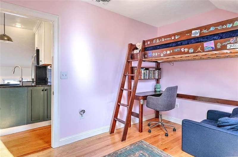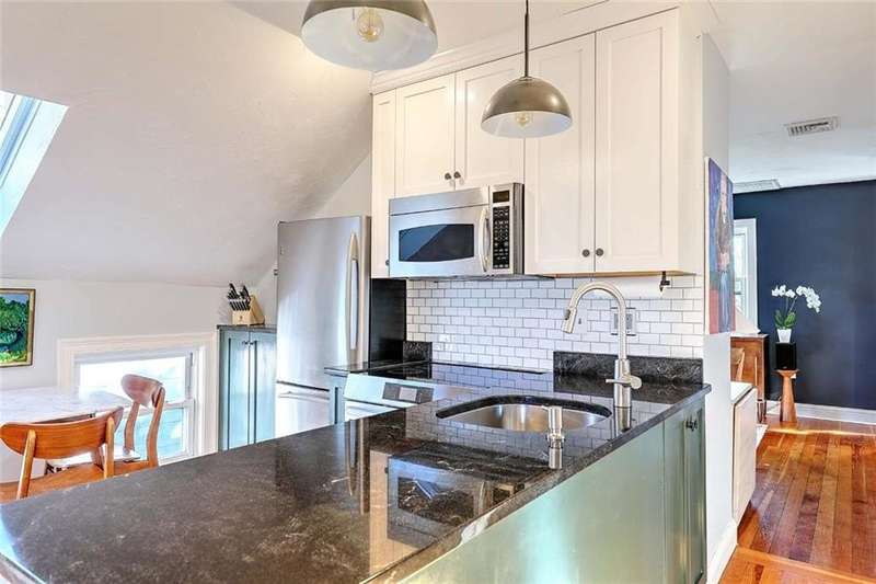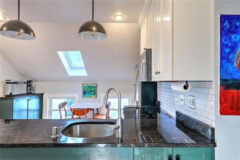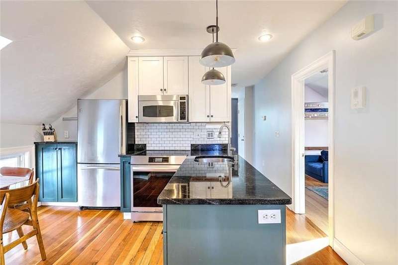 Come on up and be charmed by this top floor unit flooded with natural light and hardwood flooring through out. The eat in kitchen with recently updated stainless steel appliances features ample cabinetry and granite counter/work space. A surprisingly spacious bathroom features an oversized walk in shower plus stack unit washer/dryer. Completing the unit is a living room with an adjacent nook and two bedrooms allowing for various uses of space to suit your needs. Enjoy the outdoor patio/garden area. This heart of Fox Point location allows for easy access to the bike path and highway or take a short stroll to all that the City offers be it restaurants, shopping, Trader Joe's, universities or India Point Park on the waterfront to relax or sail.