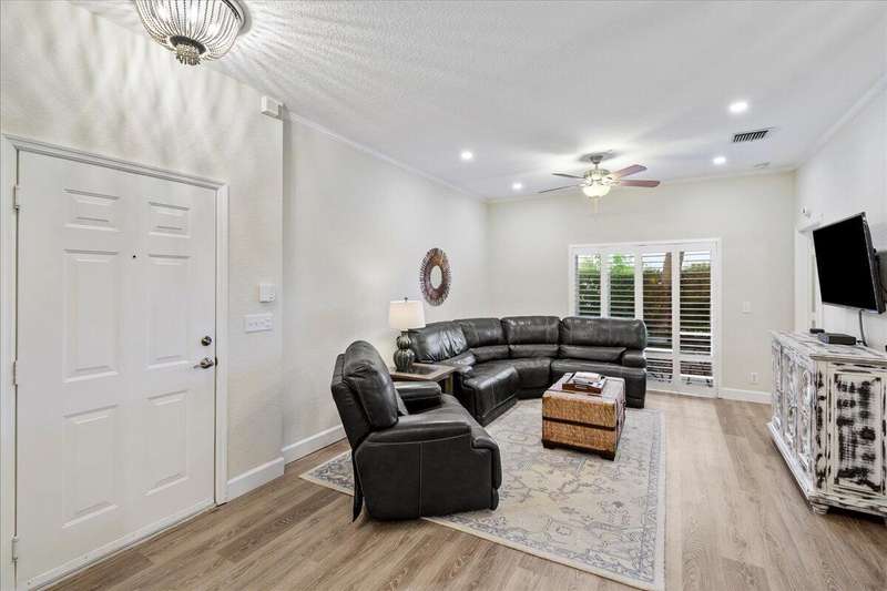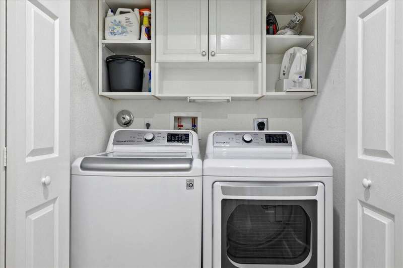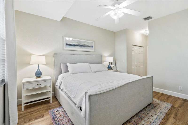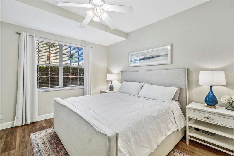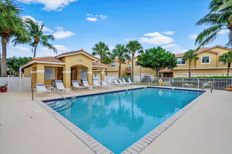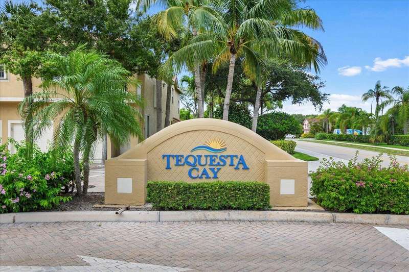 BEAUTIFULLY UPDATED CONDO, UNFURNISHED - annual. 1st floor, end unit! Includes Water & Internet, Panel Shutters for all openings installed by landlord, Full size washer/dryer (2022) in unit, Exterior Pest Control by HOA, Interior Pest Control by landlord quarterly, Community Pool! NO STAIRS! 3 bedroom/2 bath/1-car garage in Tequesta Cay Community. Split floor plan. Primary Bedroom features ensuite bath, Living room slider opens onto covered patio with storage closet. The following updated in 2022: kitchen cabinets, built-in pantry, quartz countertops, appliances, vinyl flooring. New water heater 2024. New AC & Nest thermostat 2024. 2 pets allowed w/ restrictions. No Smoking. HOA screening /approval required and tenant's agent to submit credit, eviction & background check to landlord.