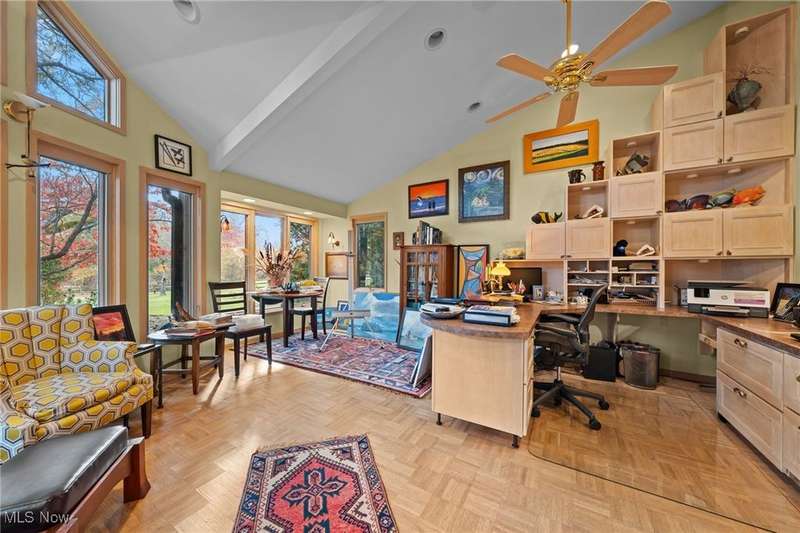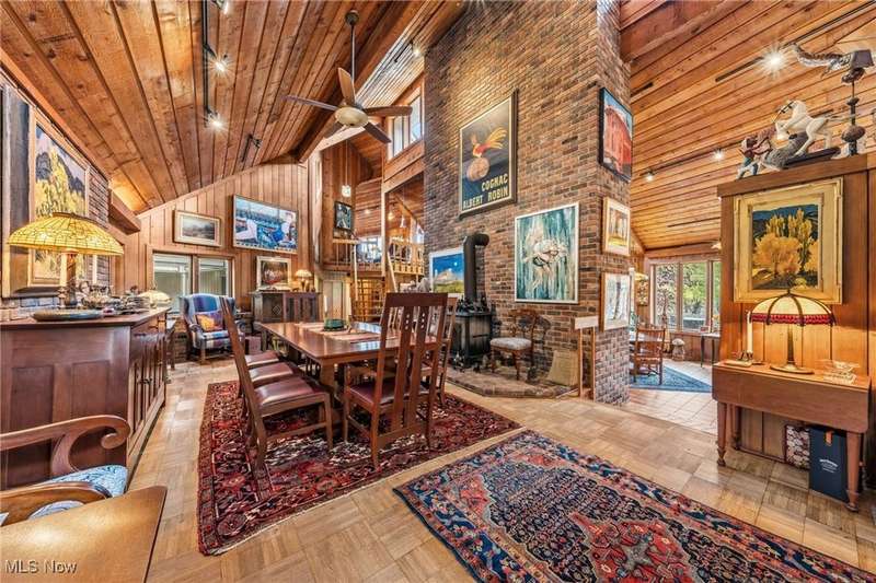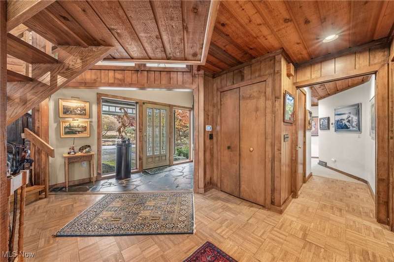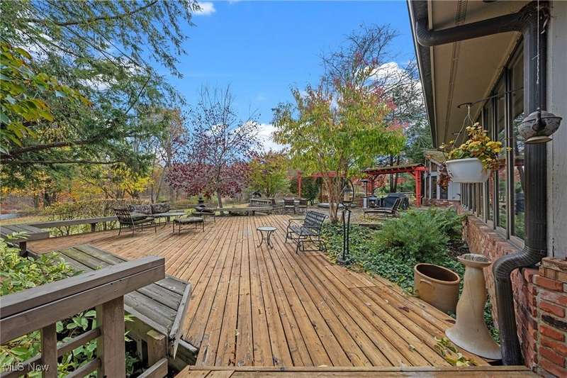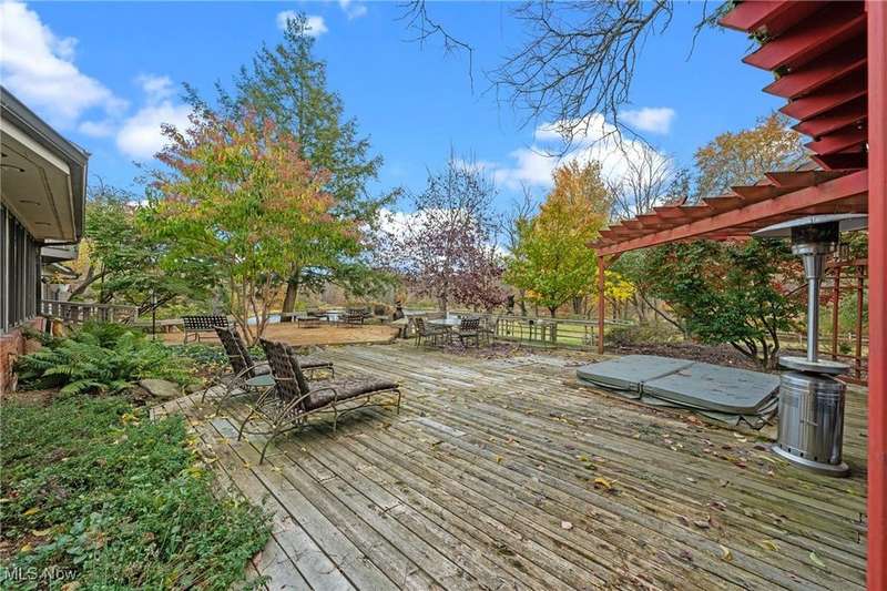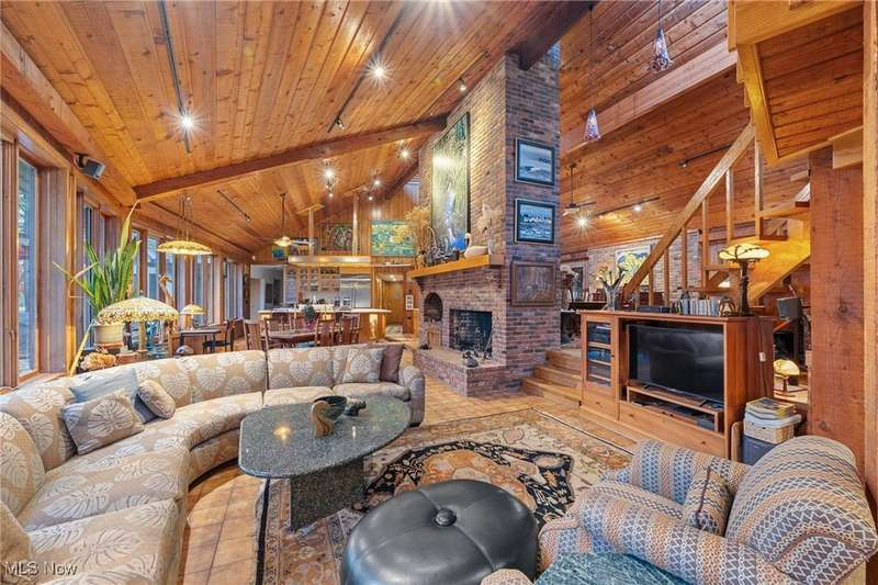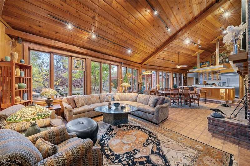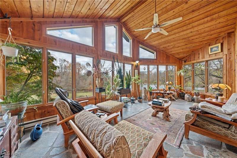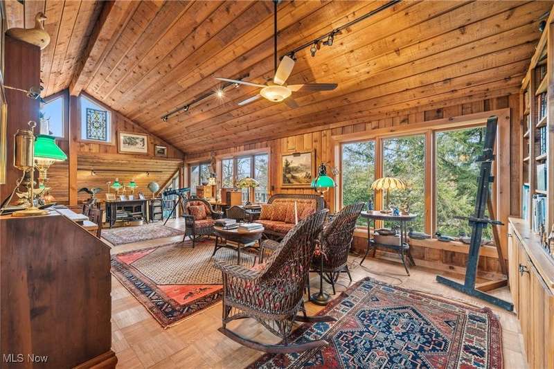 Here is your opportunity to own one of the last large parcels of land in Geauga County. This stunning 60+ acre property is truly breathtaking with the main house overlooking a picturesque pond and stunning meadow. A long private driveway through the woods opens onto a circular motor court and the custom designed home with a unique rustic/modern flair! This one of a kind home has an effortless indoor/outdoor flow with walls of windows overlooking the gorgeous grounds. A two story vaulted great room, chef's kitchen, and a generous dining room, flow seamlessly together and make entertaining effortless. The first floor owner's wing is its own retreat with a private sitting room, intimate bedroom area, expansive bathroom, and walk-in dressing room. For your guests or family, there are two second floor bedrooms in a private wing offering total and complete privacy. You will love admiring the wildlife and breathtaking views from the expansive deck which provides amazing outdoor entertaining space. There is an additional outbuilding on the property which is an amazing space with a second story artist studio. This can also be a fantastic private office or exercise studio. If you're a dog lover, there are three air-conditioned kennels with indoor/outdoor access. This incredible property is perfect for an equestrian or someone who seeks total privacy in one of the most breathtaking settings imaginable.