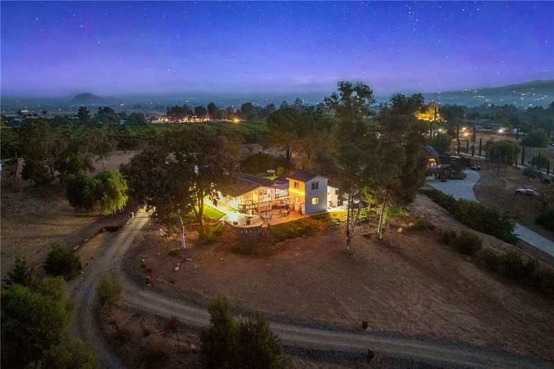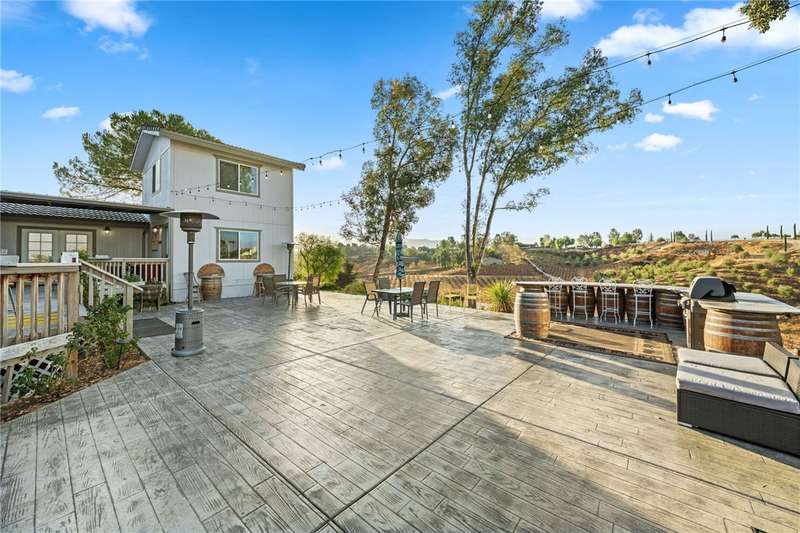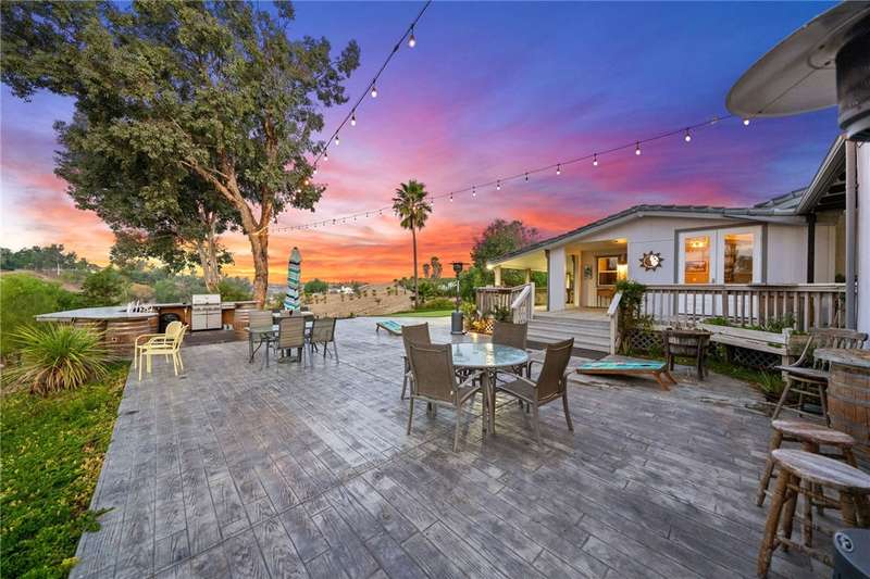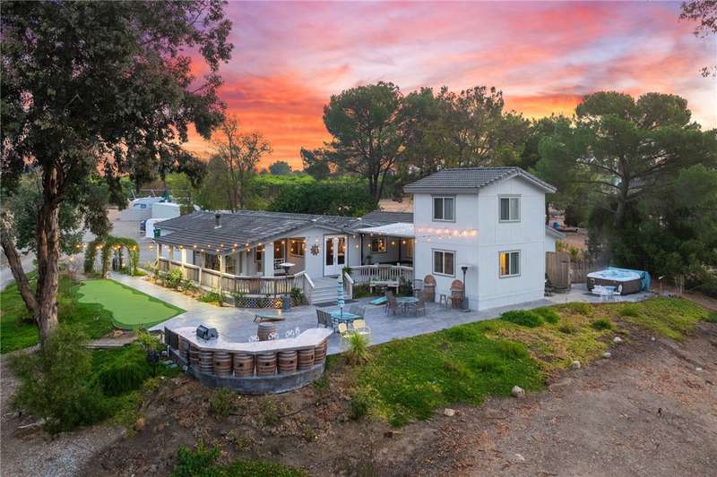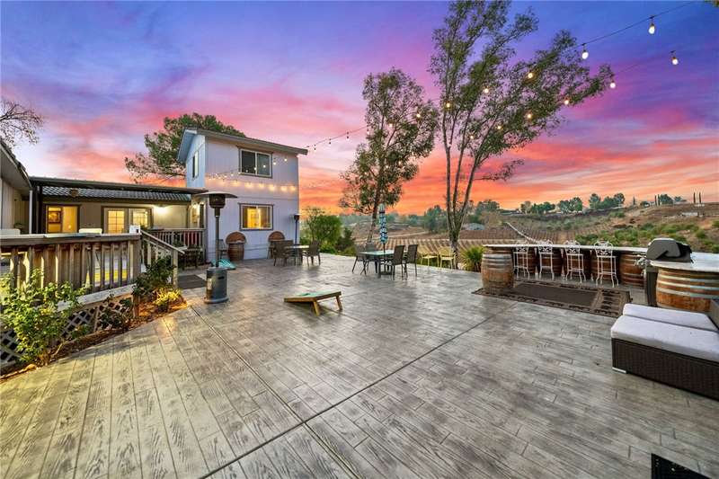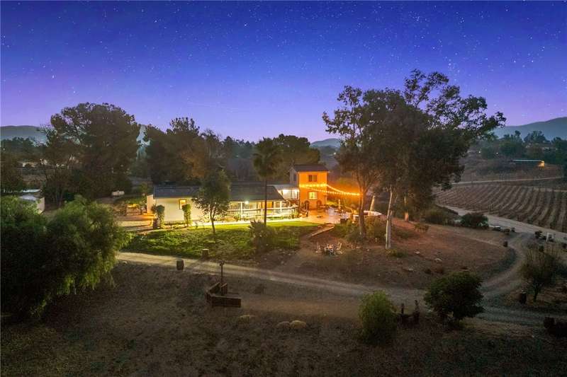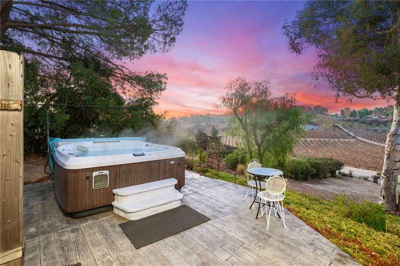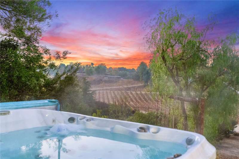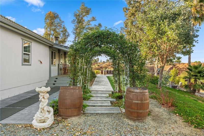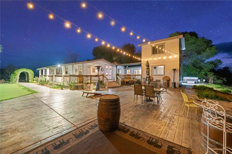 IMAGINE WAKING UP IN BEAUTIFUL WINE COUNTRY EVERY MORNING!! This is a must see home that was updated in 2017! Don't pass this one by, this by far is not your typical manufactured home...PLUS THERE'S A PERMITTED STICK-BUILT ADDITION with ROOM to EXPAND on the SECOND STORY!! Perched atop a scenic hill in Temecula Wine Country offering breathtaking panoramic views and ample space for everyone with 6 bedrooms and 4 bathrooms, including two with en-suite bathrooms!! Perfect for hosting or accommodating your outdoor lifestyle, the property boasts RV, boat, and toy parking with convenient hookups (water, black tank pump-out, and 30 & 50 AMP connections). A sprawling wraparound deck and a stamped concrete patio create the ultimate setting to soak in vibrant SoCal sunsets or marvel at early-morning hot air balloons drifting by. Enjoy an outdoor paradise with a custom wine barrel bar, BBQ station, and cozy firepit. Let the good times roll with a horseshoe pit, a bubbly jacuzzi overlooking vineyard-draped hills, and a 3-hole putting green for endless entertainment. Step inside to find an open and inviting great room with built-in window seats--perfect for a quiet reading nook or sipping morning coffee. A large built-in desk with ample storage makes the space as functional as it is charming. The oversized kitchen is a chef's dream, featuring granite countertops, an island, stainless steel appliances, a built-in wine rack, abundant cabinet space, and double doors leading to the deck--perfect for seamless indoor-outdoor dining. The luxurious primary suite is a peaceful retreat, bathed in natural light with a spacious walk-in closet and built-in dresser. The en suite bathroom includes a beautifully oversized walk-in shower, ideal for unwinding after a day of wine tasting or exploring. For your convenience, the property also features an electric car charging station, two metal sheds, and two 40-foot shipping containers for plenty of storage. Currently operating as an AirBnb. Schedule your private tour today!