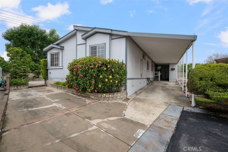 Welcome to Alta Laguna Mobile Home Estates—Rancho Cucamonga’s most sought-after 55+ community! This beautifully upgraded 3-bedroom, 2-bathroom home boasts soaring high ceilings, laminate flooring, and brand-new carpet for a fresh, modern feel throughout. Enjoy an open-concept floor plan filled with natural light, creating a bright and airy atmosphere perfect for relaxing or entertaining. The large primary suite features dual sinks, a walk-in shower, and generous closet space. Two additional bedrooms offer flexibility for guests, hobbies, or home office needs. Step outside to the largest yard in the entire community—fully landscaped and perfect for outdoor enjoyment. Additional highlights include central A/C, ceiling fans, an individual laundry room, an attached carport with 2 parking spaces, and plenty of built-in storage. Residents of Alta Laguna enjoy a wide array of amenities, including a sparkling swimming pool, a welcoming clubhouse, a spacious recreation room, a putting green, and a well-equipped gym—all designed to support an active and social lifestyle. Don’t miss this rare opportunity to live in comfort and style in one of Rancho Cucamonga’s best senior living communities!
