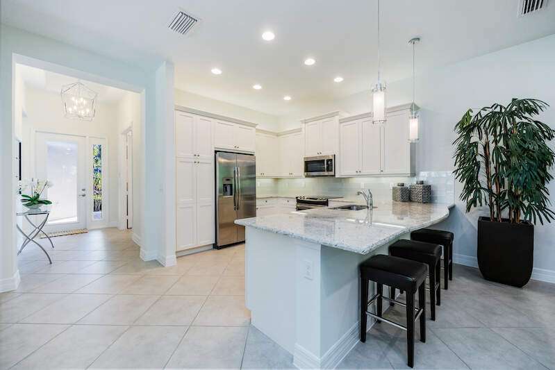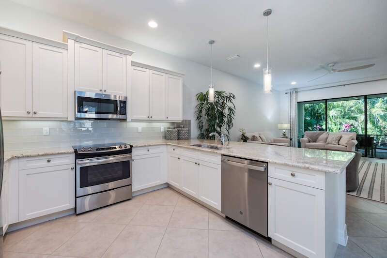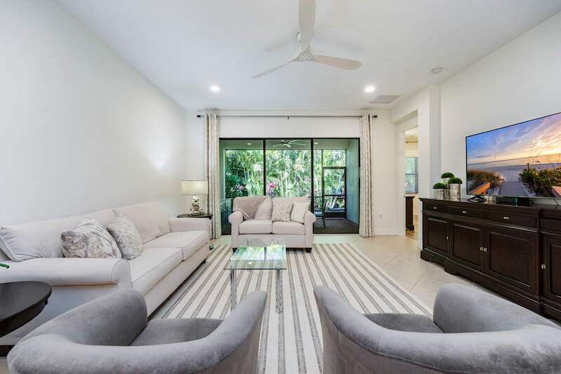 Annual Rate: $4800 & Seasonal Rate: $9600. "Live life beautifully in SW Florida" in an upgraded villa that offers the perfect combination of modern living and resort-style amenities. Located in the highly sought-after Marbella Isles community in Naples, Florida, this 2-bedroom plus den, 2-bathroom home is ideal for those seeking both comfort and convenience. Inside, you'll find high-end finishes, including sleek quartz countertops, tile and vinyl floors throughout, and stainless steel appliances in the kitchen. The spacious master suite features a king-sized bed, while the guest bedroom includes another king size bed. The den/3rd bedroom offers a full-sized bed, making it perfect for additional guests or as a home office. Enjoy the ease of a two-car garage and the tranquility of a vibrant community with exceptional amenities. Marbella Isles offers a resort-style pool, a kid-friendly pool with slides, pickleball, tennis courts, and a fully-equipped clubhouse with a kitchen and community room. Stay active and entertained with an exercise room, media room, card room, and game room featuring a pool table, ping-pong, shuffleboard, and even an Atari machine.This is a must-see property for anyone seeking the best of Naples living-don't miss out! Just 10 minutes to local beaches, 15 minutes to downtown and in the heart of Naples with shopping & dining all around you, including Tiburon the Ritz Carlton Golf Community just 2 miles away..